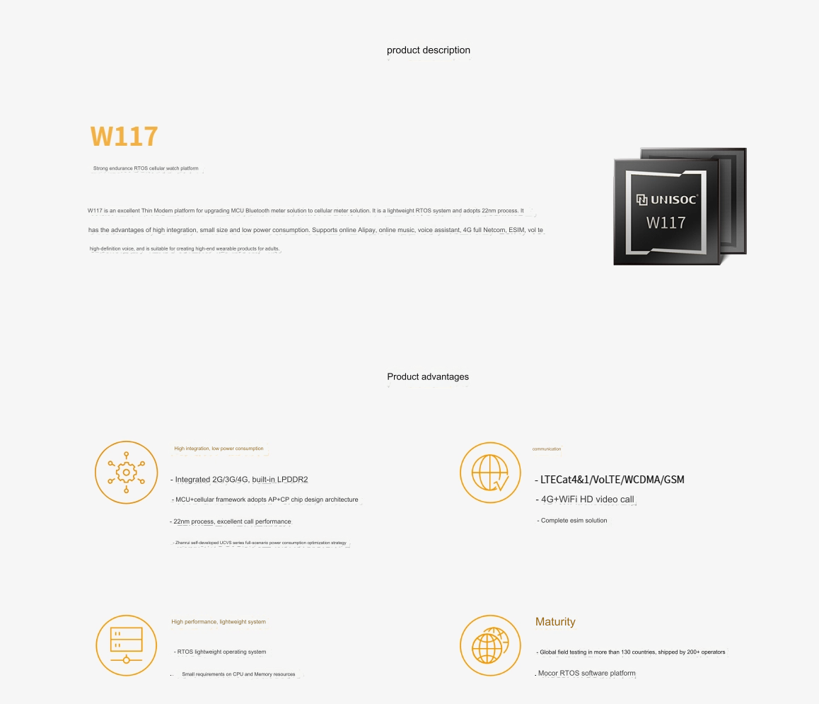 Процессор Unisoc W117 пойдет на создание довольно солидных сотовых часов на базе RTOS, используя преимущества 22-нм технологии для достижения энергоэффективности. Он будет очень эффективен для использования в носимых устройствах высокого класса для случаев, когда важна эффективная работа без потерь в какой-либо функциональности.