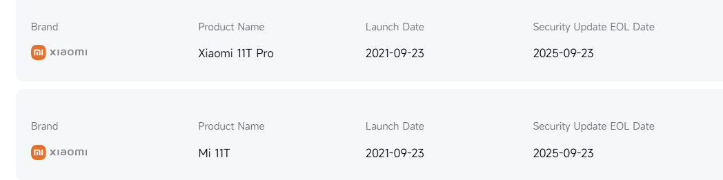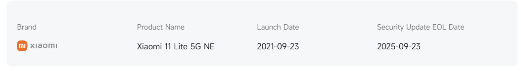 Os modelos Mi 11 Lite 5G NE e Mi 11 LE também estão encerrando seu suporte de software após a transição bem-sucedida para o HyperOS 2 e o Android 14. Atualizações regulares foram fornecidas até esse estágio oficial de fim de vida útil.