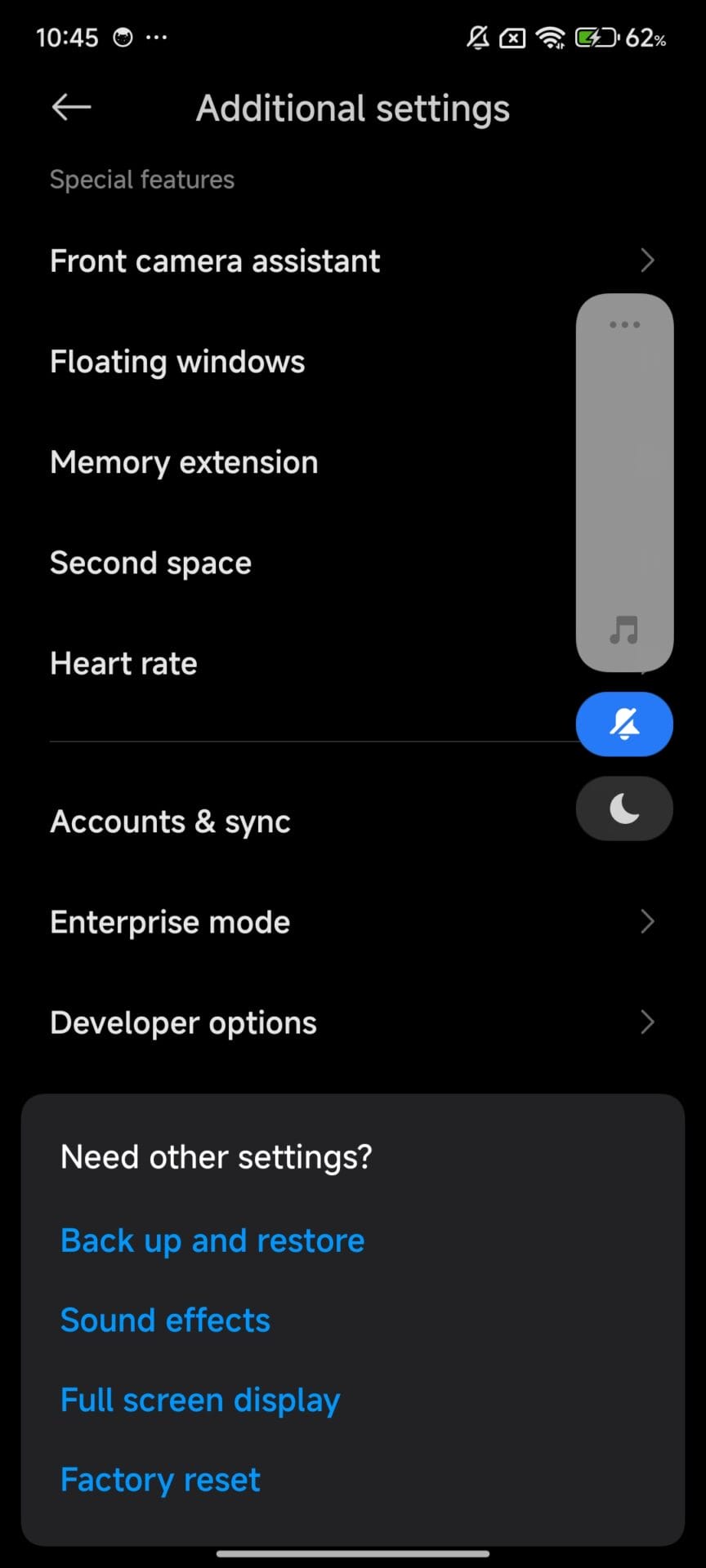 2. Vá para Configurações > Configurações adicionais > Opções do desenvolvedor.
