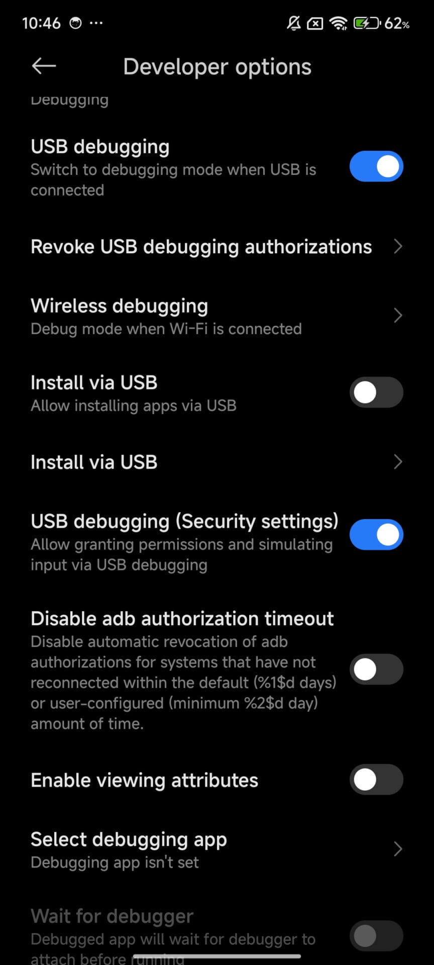 2. Vá para Opções do desenvolvedor > Depuração sem fio.