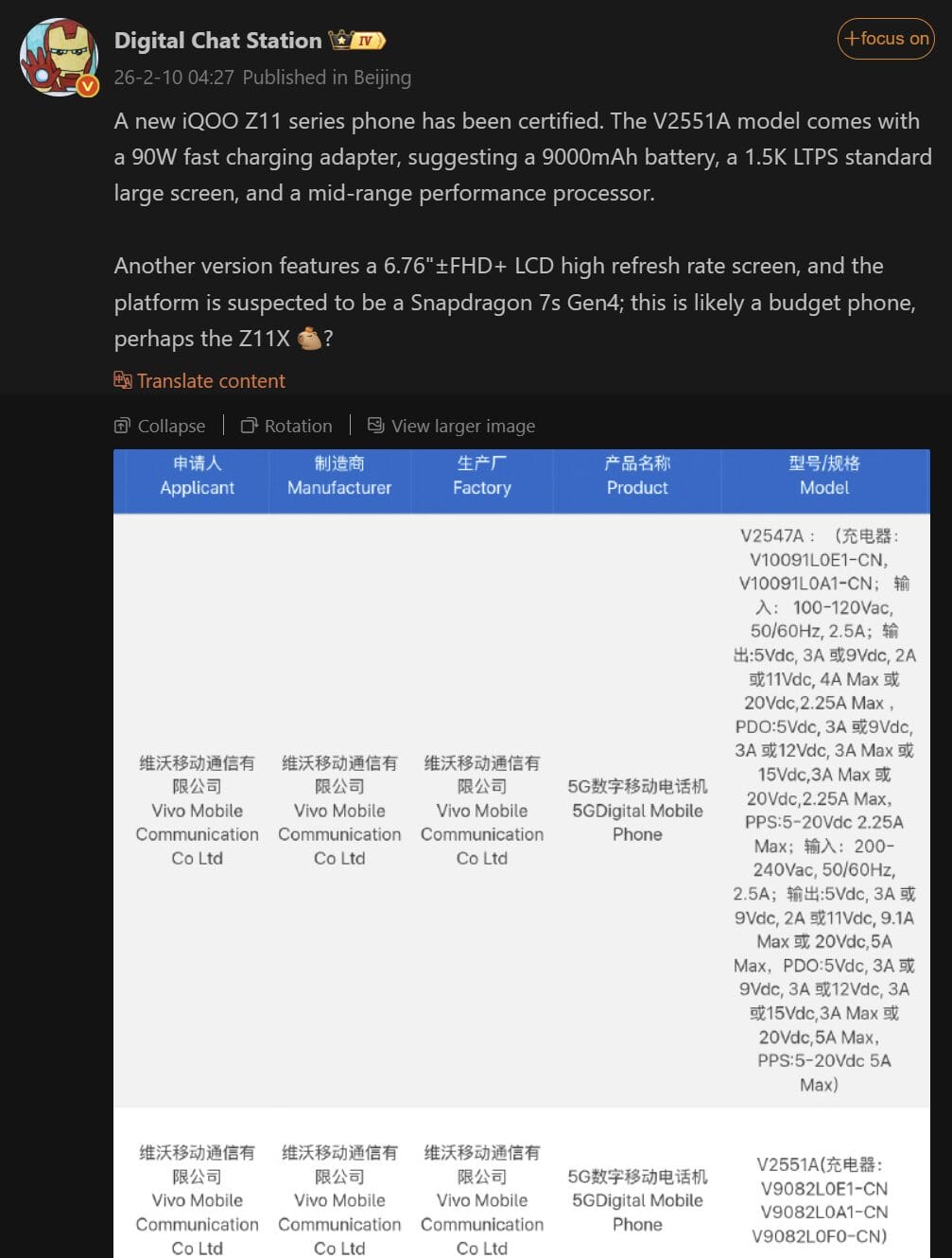 De acordo com o vazamento, o novo dispositivo (Modelo V2551A) foi projetado para dominar o mercado de desempenho de nível básico (~1000 Yuan).