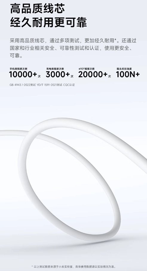 Um cabo mais fino gera maior resistência e perda de tensão com alto aquecimento. Esse tipo de ineficiência é intolerável em uma linha de carregamento rápido de 6A da Xiaomi. Somente condutores grossos, nesse caso, podem manter o desempenho estável de 120 W e, ao mesmo tempo, atender aos rigorosos requisitos de segurança da Xiaomi quanto à temperatura, durabilidade e estabilidade do sistema.
