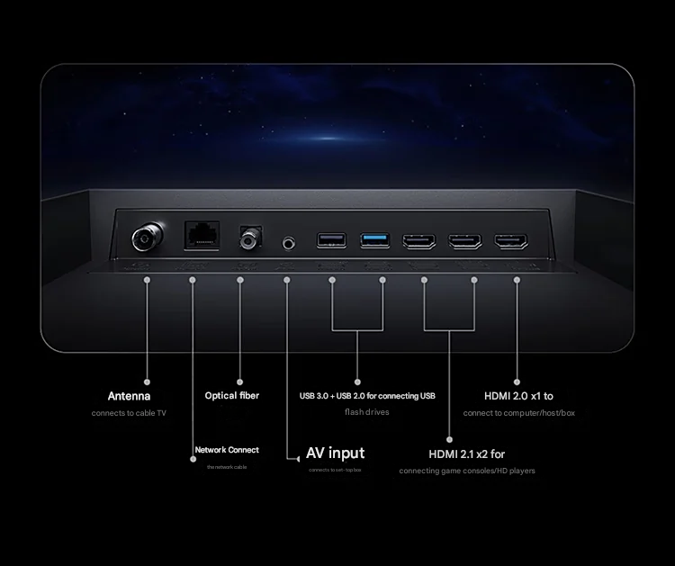 Além de sua impressionante tela, o REDMI TV X 2026 está repleto de recursos inteligentes projetados para facilitar a sua vida. Ela é alimentada por um chip A73 quad-core e vem com generosos 4 GB de memória e 64 GB de armazenamento. A TV é executada com o novo Xiaomi HyperOS, que proporciona uma experiência de usuário rápida, suave e intuitiva. A TV também é compatível com um mecanismo de qualidade de imagem desenvolvido por você mesmo e conta com a proteção ocular Xiaomi Qingshan para ajudar a reduzir o cansaço visual durante longas sessões de visualização.