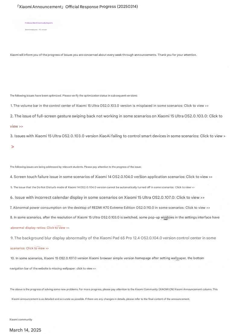 A Xiaomi tem trabalhado para corrigir dezenas de problemas em seu sistema HyperOS em vários dispositivos. As otimizações têm como objetivo melhorar a experiência do usuário e a estabilidade do sistema. A seguir, você encontrará um resumo abrangente das últimas correções e melhorias contínuas.