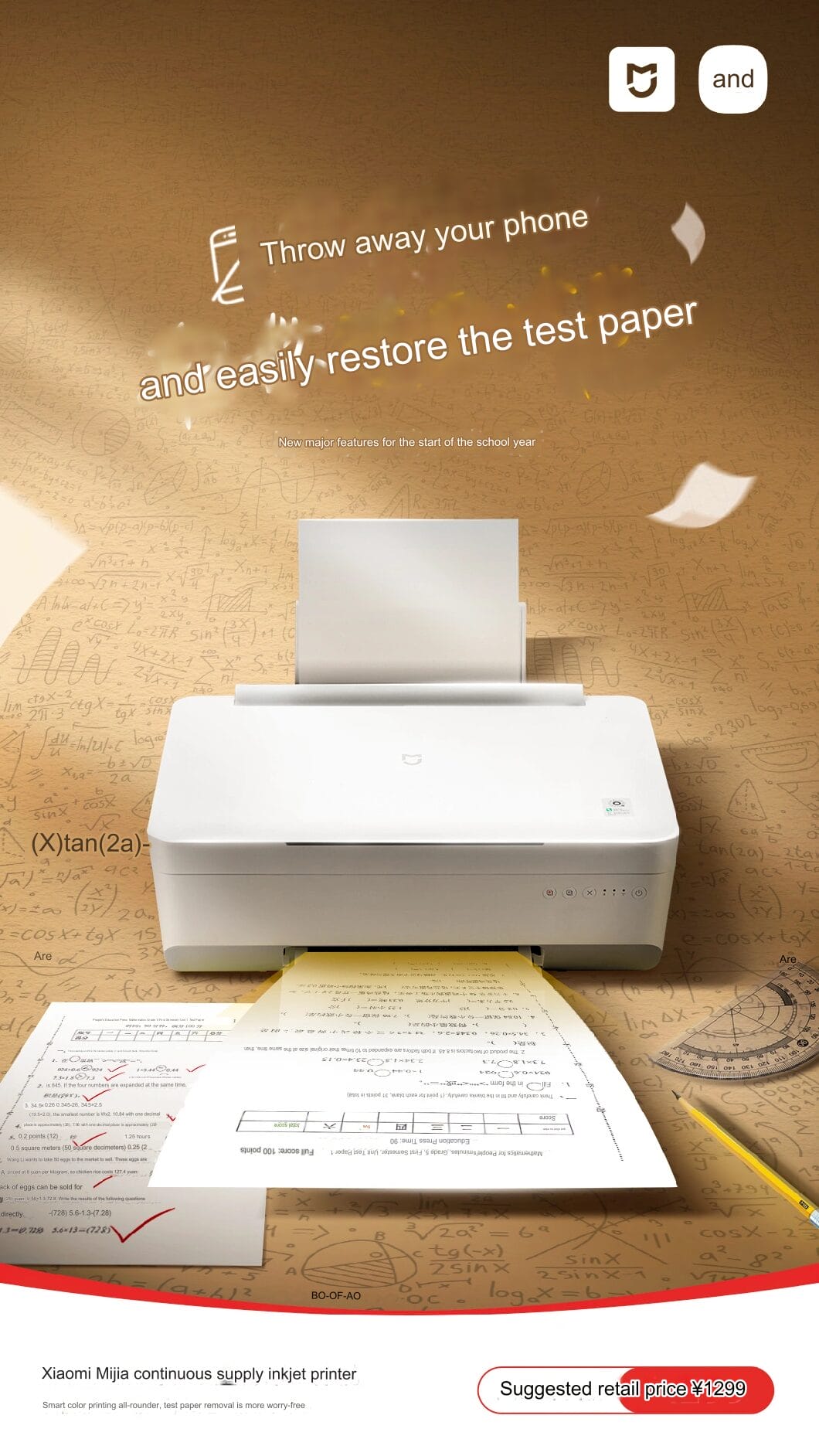 Espera-se que a nova função “Restore Test Paper” (Restaurar papel de teste) economize papel e maximize o uso de materiais de estudo, tanto para alunos quanto para educadores. As respostas e correções em um papel de teste são apagadas para que uma nova folha possa ser usada para mais prática ou revisão. De acordo com os materiais promocionais, isso agora é possível na impressora a jato de tinta de fornecimento contínuo Mijia.