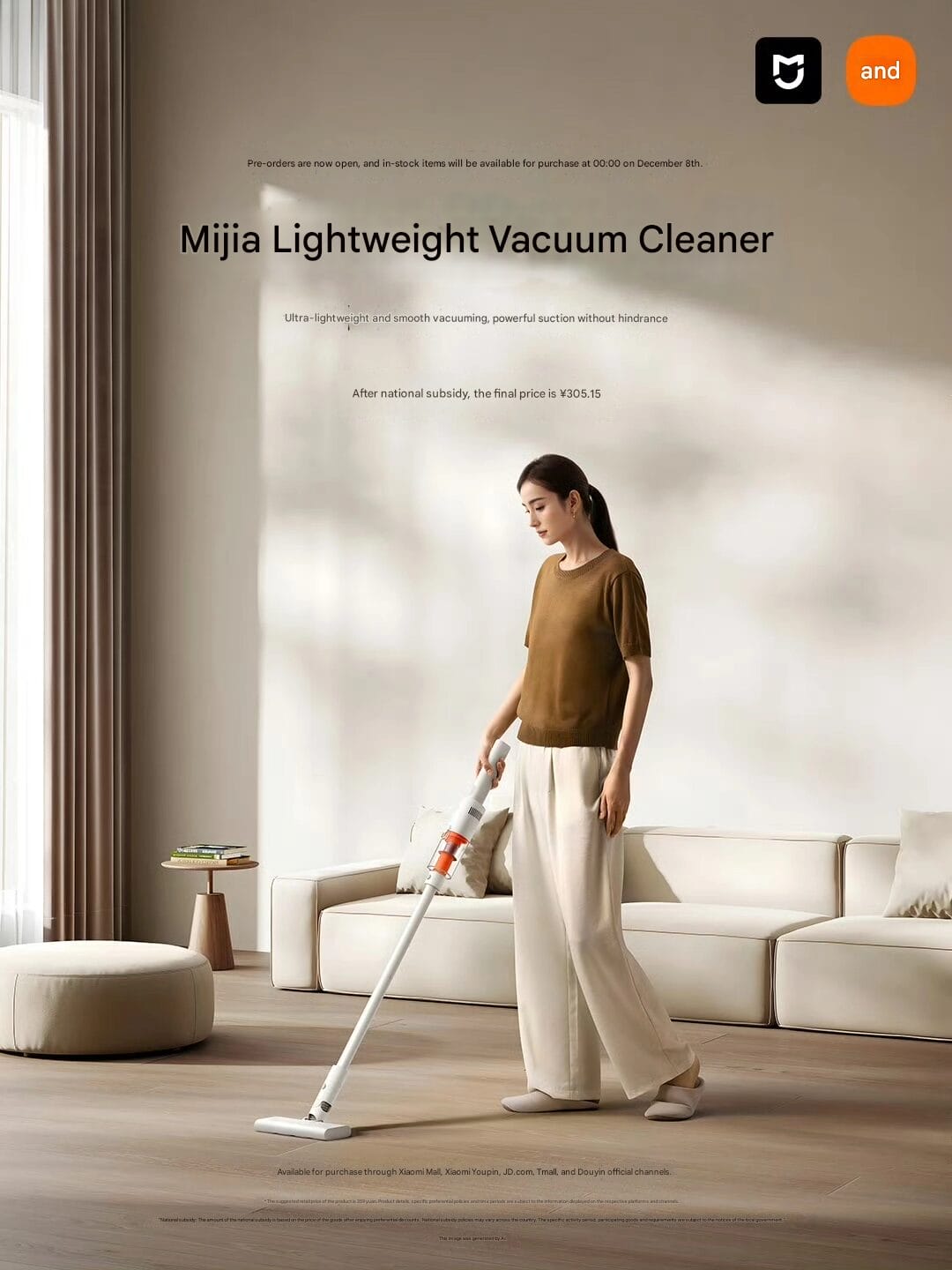O aspirador de pó leve Mijia será oficialmente colocado à venda em 8 de dezembro, mas somente na China. O preço de varejo do dispositivo é de 359 CNY, o que equivale a aproximadamente US$ 49. Para os consumidores locais, esse preço se torna ainda mais atraente, tendo em vista o subsídio do governo para eletrodomésticos digitais, que pode reduzir consideravelmente o preço. Com esse preço, o dispositivo certamente competirá fortemente na área de aparelhos de limpeza doméstica econômicos.
