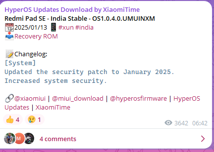 Depois de uma longa espera, a Xiaomi finalmente lançou sua primeira atualização de segurança do HyperOS para o ano de 2025, o que prova que a empresa está preocupada com a experiência e a segurança do usuário. Agora, 13 dias após o início do novo ano, a atualização chegou ao Redmi Pad SE na Índia e ao Xiaomi Pad 6 na China.