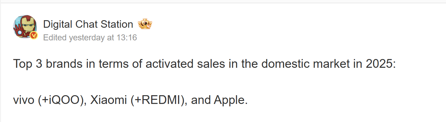 De acordo com as informações do setor compartilhadas por fontes confiáveis, como a Digital Chat Station, parece que a concorrência tem sido muito acirrada no ano passado. As três primeiras empresas da lista – vivo, Xiaomi e Apple – conseguiram ultrapassar a barreira dos 40 milhões de ativações. Os dados disponíveis indicam que a diferença entre a primeira e a segunda marca é muito próxima, uma questão de 200.000 a 300.000 unidades.
