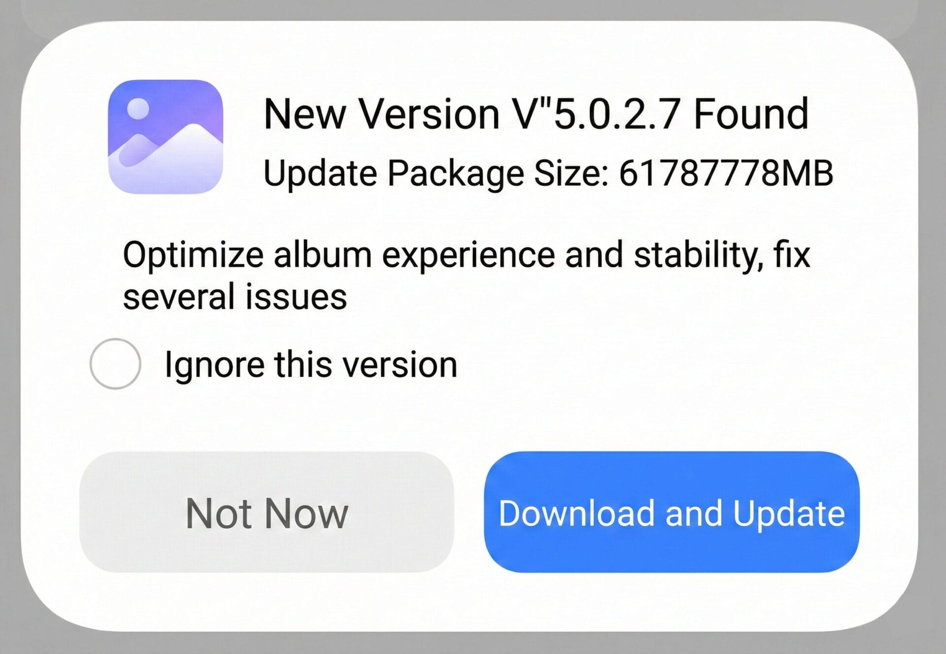 Os usuários da Xiaomi recentemente se depararam com uma notificação de atualização bastante intrigante no HyperOS 3. A atualização da versão V5.0.2.7 lançada para o aplicativo Xiaomi Gallery exigia que os usuários tivessem exatamente 61.787.778 MB, ou aproximadamente 61 TB, de espaço livre.
