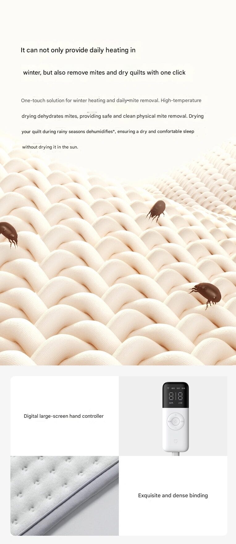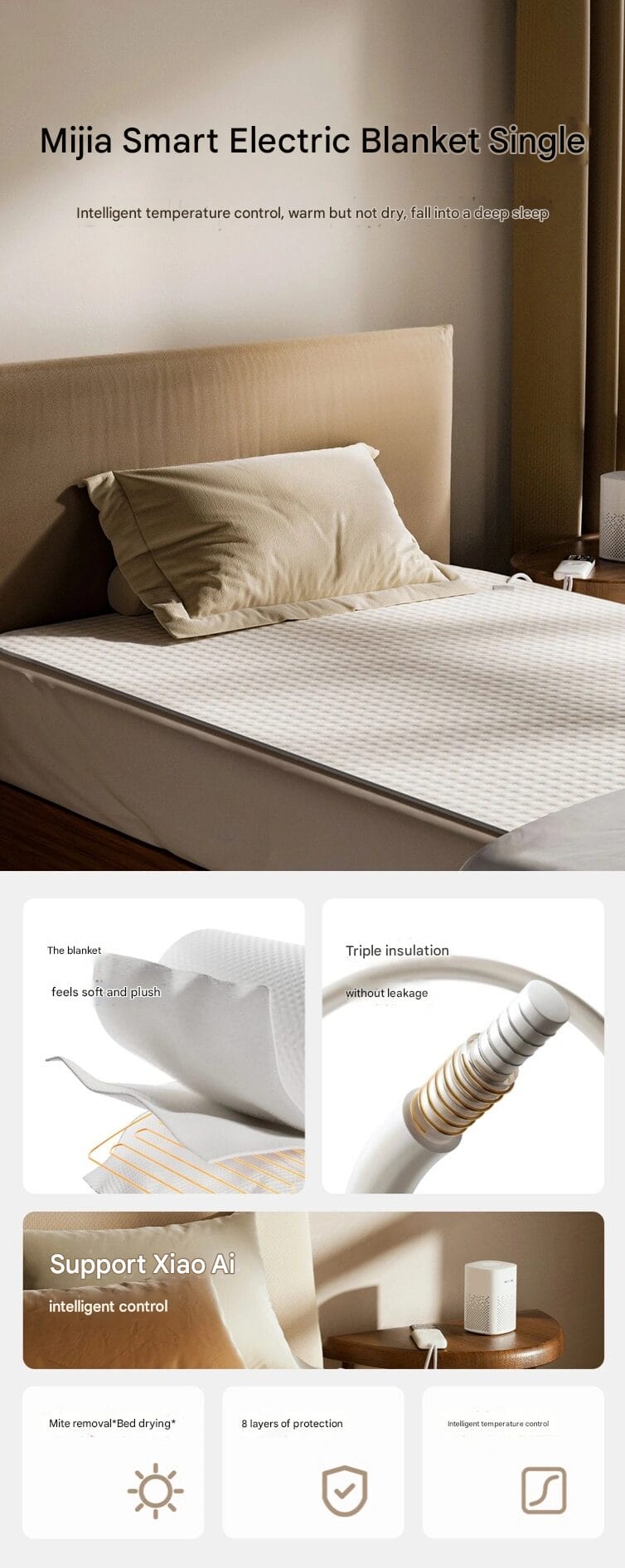 A Xiaomi lançou o Mijia Smart Electric Blanket (Single Edition) na JD.com, um produto de aquecimento inteligente e seguro para este inverno. O produto conta com o apoio do interruptor programado do aplicativo Mijia e um modo de remoção de ácaros para maior higiene e conforto. Com um preço inicial de 175,1 yuans (cerca de US$ 24), o cobertor inteligente oferece uma experiência de aquecimento doméstico de baixo custo, porém conectado.