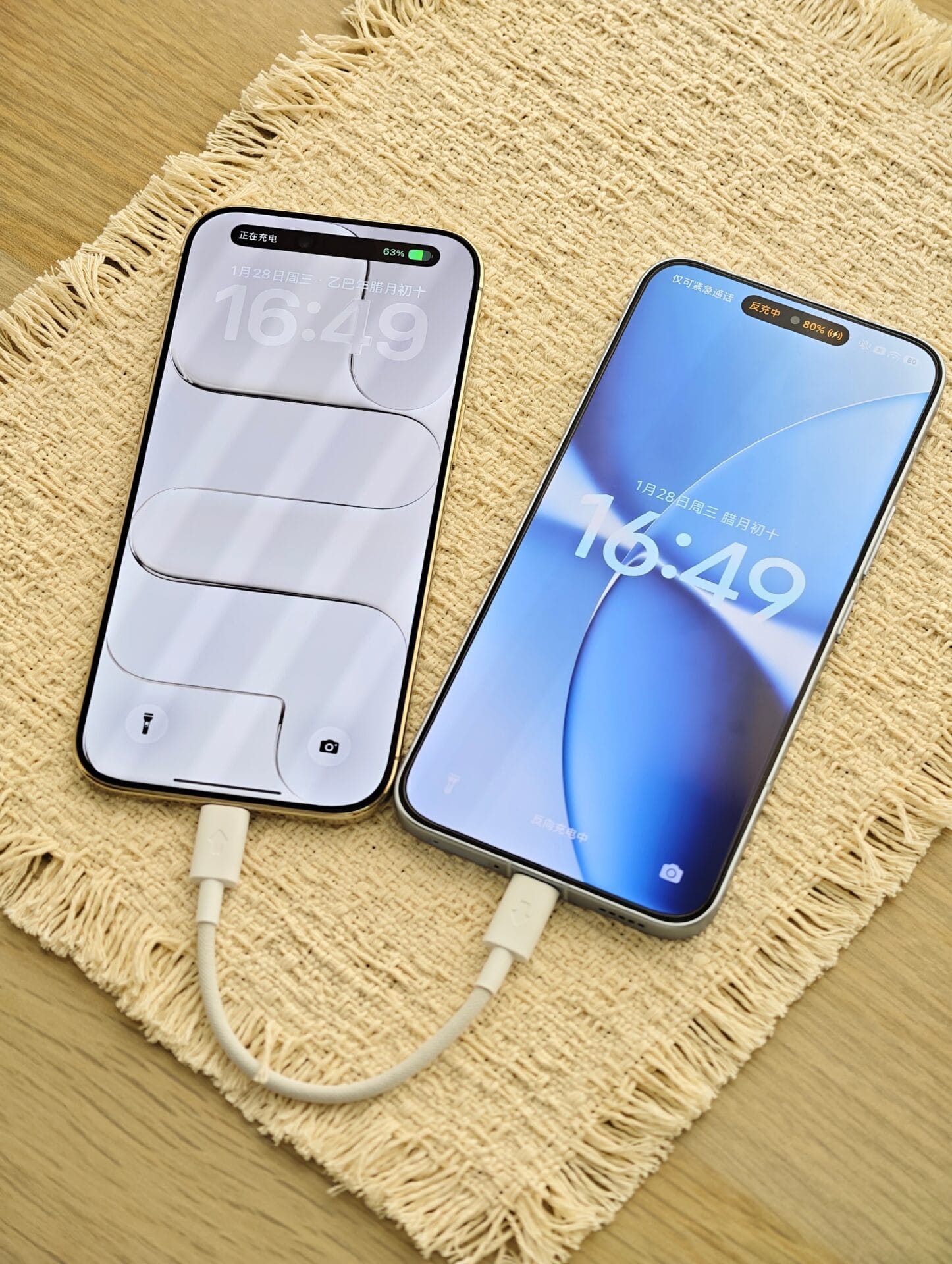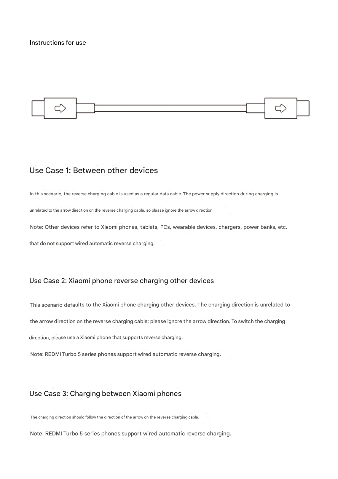 Carregamento de dois telefones: Para o carregamento entre dois telefones Xiaomi, a energia flui especificamente na direção das setas impressas nos conectores.