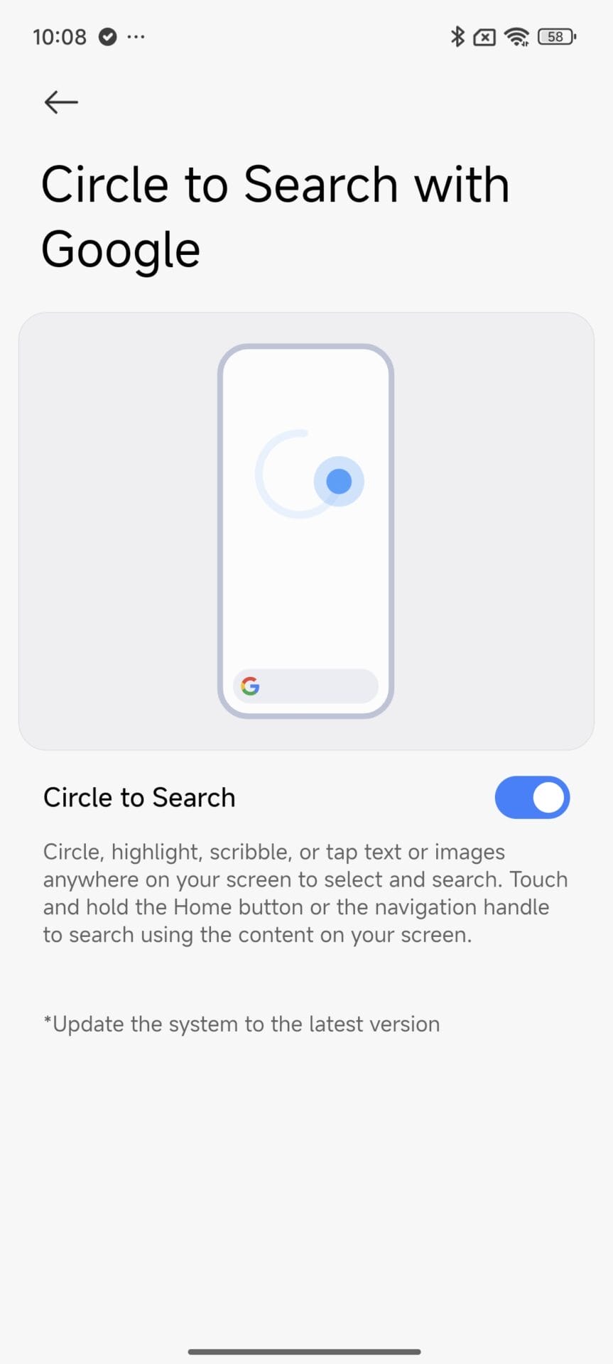 Circle, scribble, or tap anything on your screen to highlight text or an image to begin a search of it. Access via the Home button or navigation handle provides immediate context to the selected content.