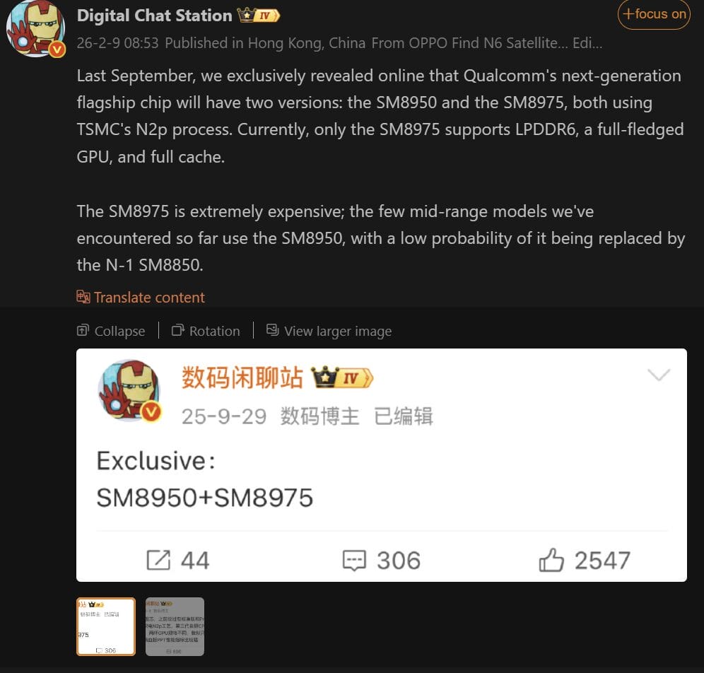 De acordo com um novo vazamento do confiável insider de tecnologia @DigitalChatStation, a Qualcomm está se preparando para sacudir sua linha de carros-chefe com uma estratégia de dois chips para a próxima geração. O vazamento revela que a empresa está desenvolvendo duas versões distintas de seu próximo processador, identificadas pelos números de modelo SM8950 e SM8975.