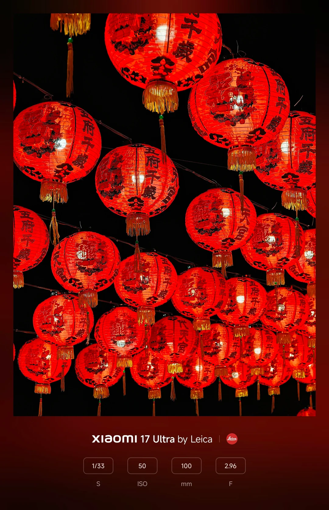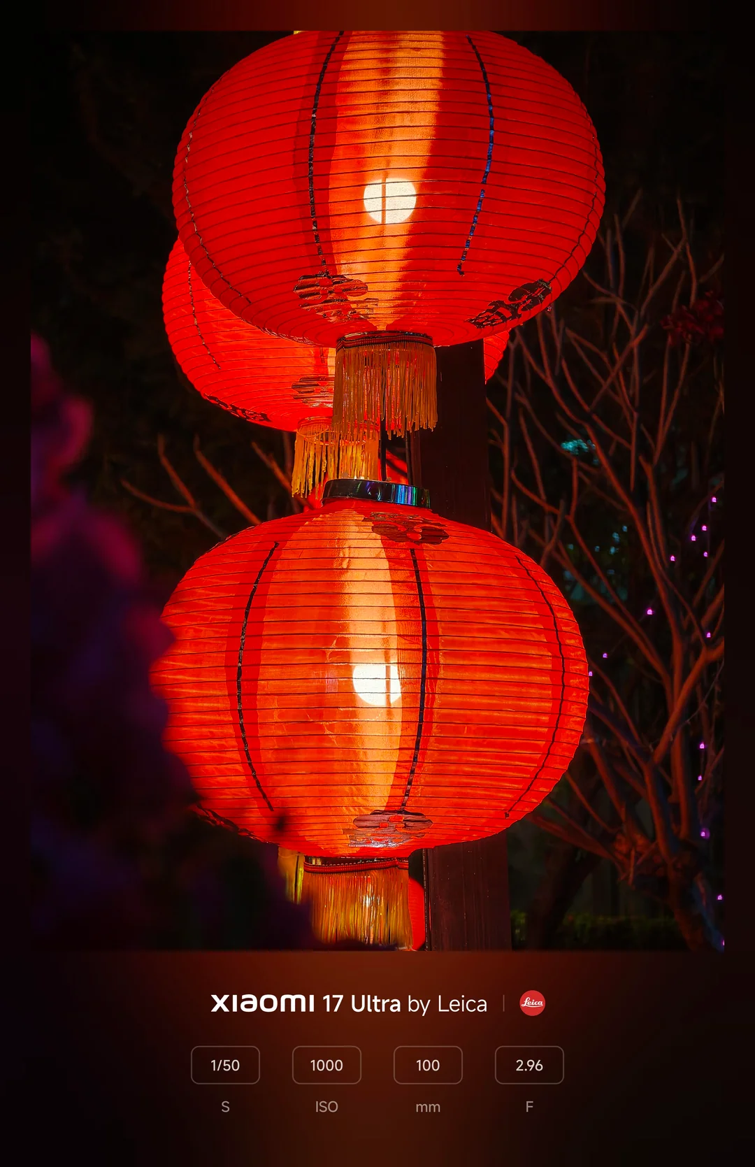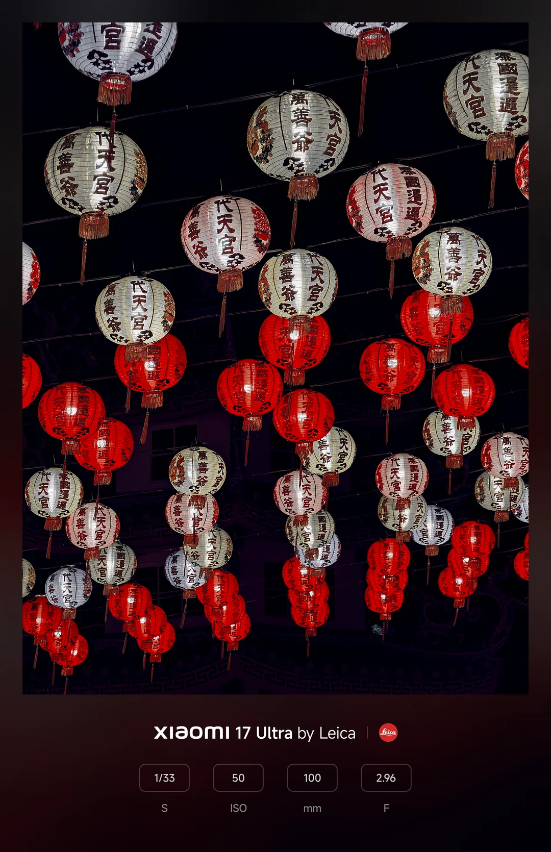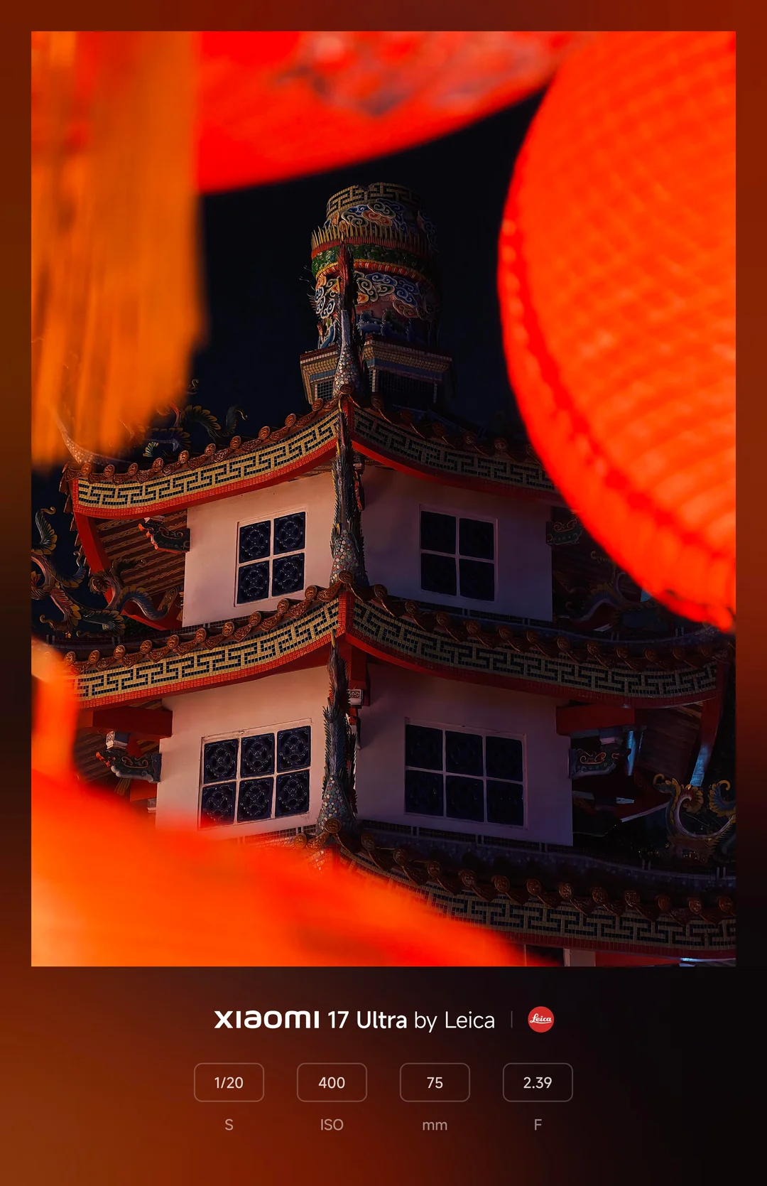 Ciência de cores Leica: Em fotos de lanternas vermelhas brilhantes, a câmera preservou os pretos profundos e verdadeiros do céu noturno, criando um contraste dramático que fez com que os ricos tons vermelhos se destacassem com a autêntica ciência de cores Leica.