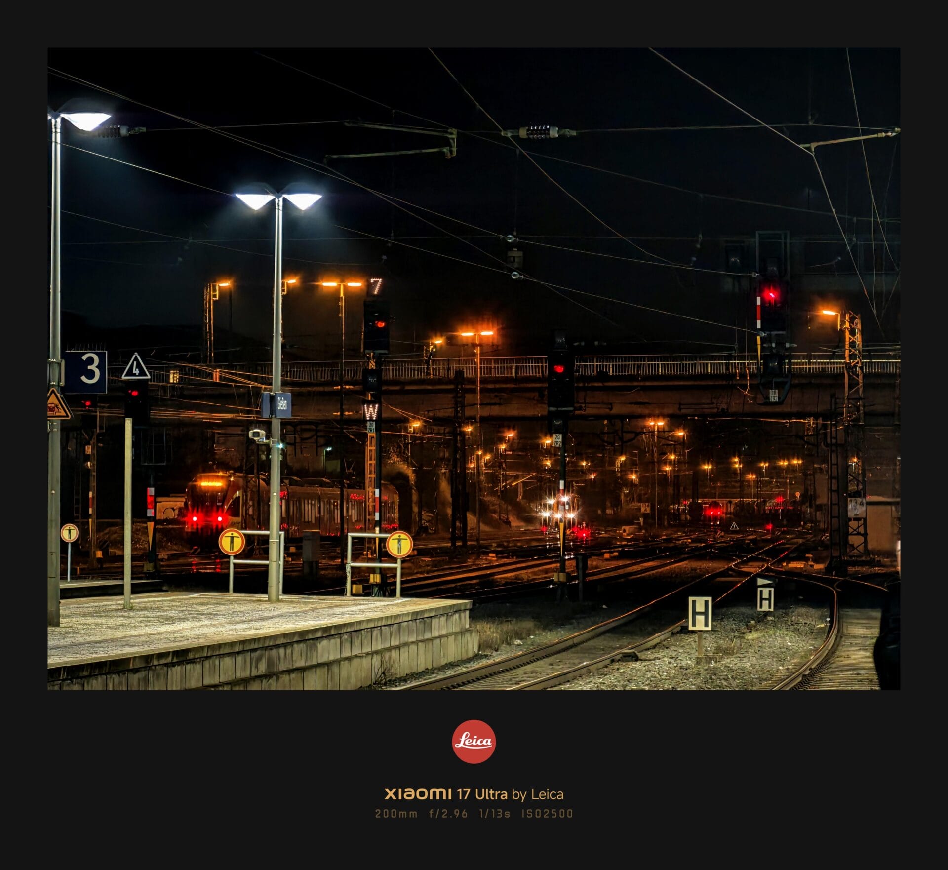 OIS surpreendente a 200 mm: Em uma foto desafiadora de uma estação de trem à noite usando a lente teleobjetiva de 200 mm, a câmera conseguiu uma velocidade de obturador de 1/13s. Conseguir uma foto nítida com a mão nessa distância focal e velocidade do obturador é uma prova de um sistema de Estabilização Ótica de Imagem (OIS) extraordinariamente avançado.