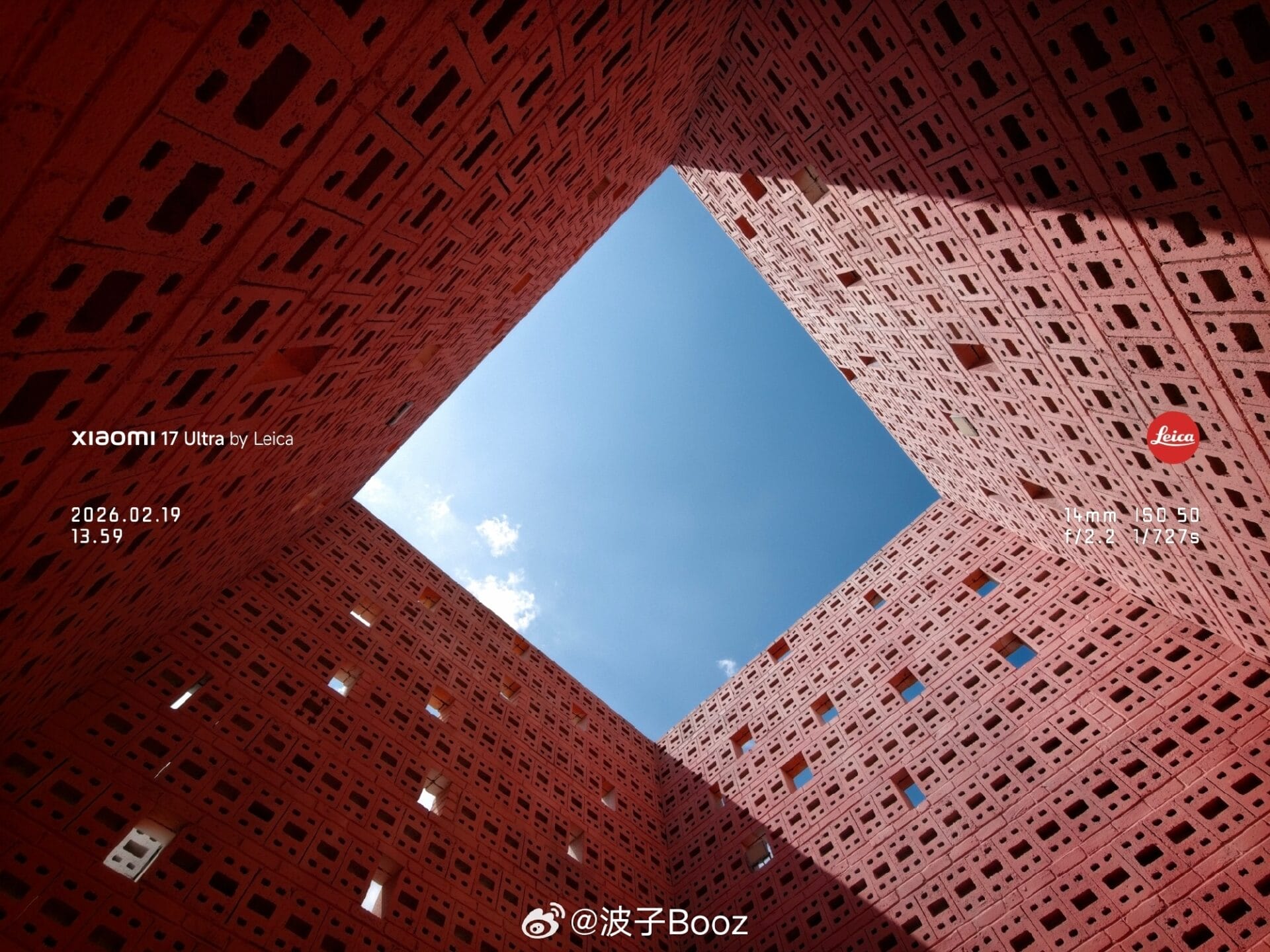 Geometria impecável com a ótica Leica UltraPure: Fotografar arquitetura em 14 mm normalmente introduz uma distorção de barril perceptível. No entanto, observando as fotos estruturais, especialmente o teto circular azul simétrico e o quadrado de tijolos vermelhos, a distorção é praticamente inexistente. A óptica Leica UltraPure garante que as linhas permaneçam geometricamente perfeitas e nítidas de canto a canto.
