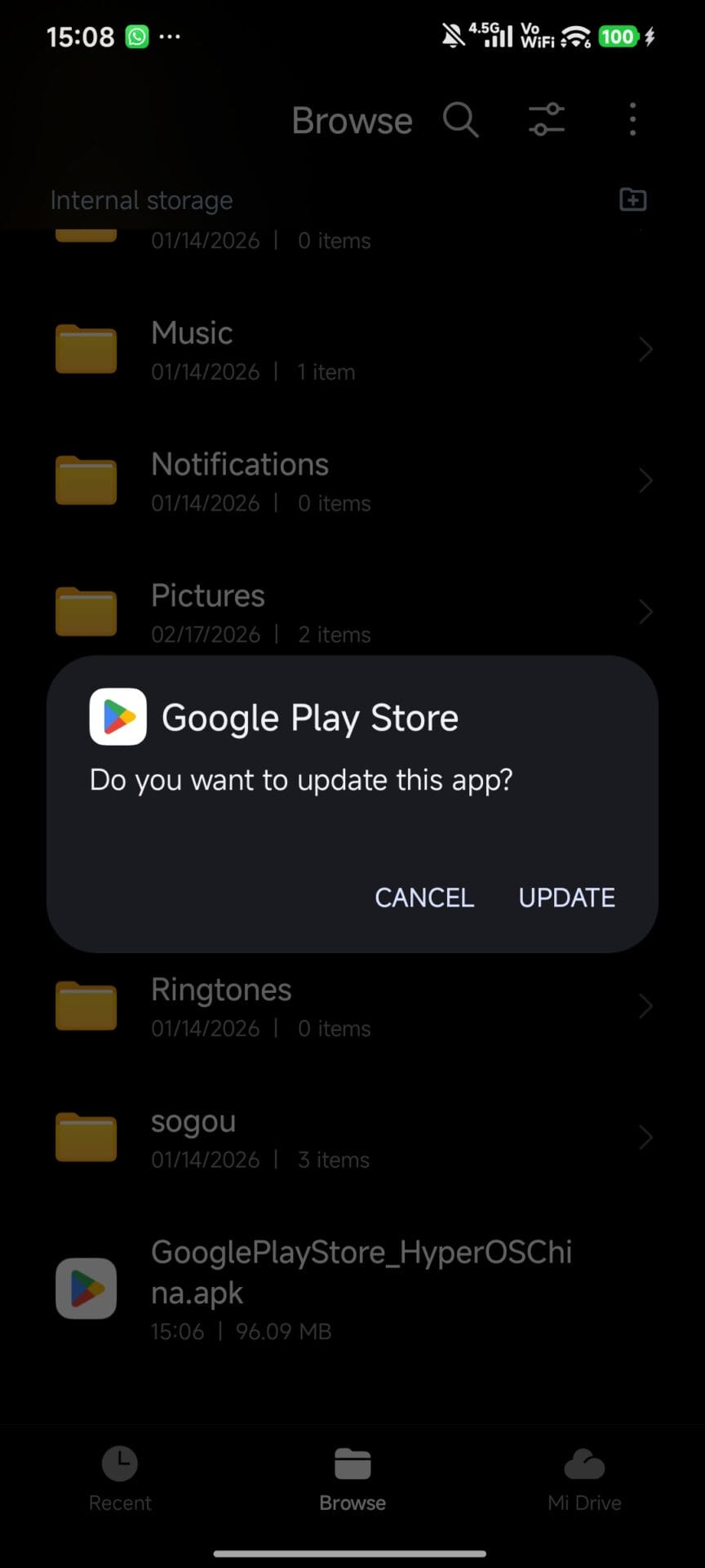 2. Baixe o APK: abra o navegador nativo e baixe o APK da Google Play Store de uma fonte confiável, como a página do utilitário de atualizações do HyperOS. Instale o arquivo baixado.