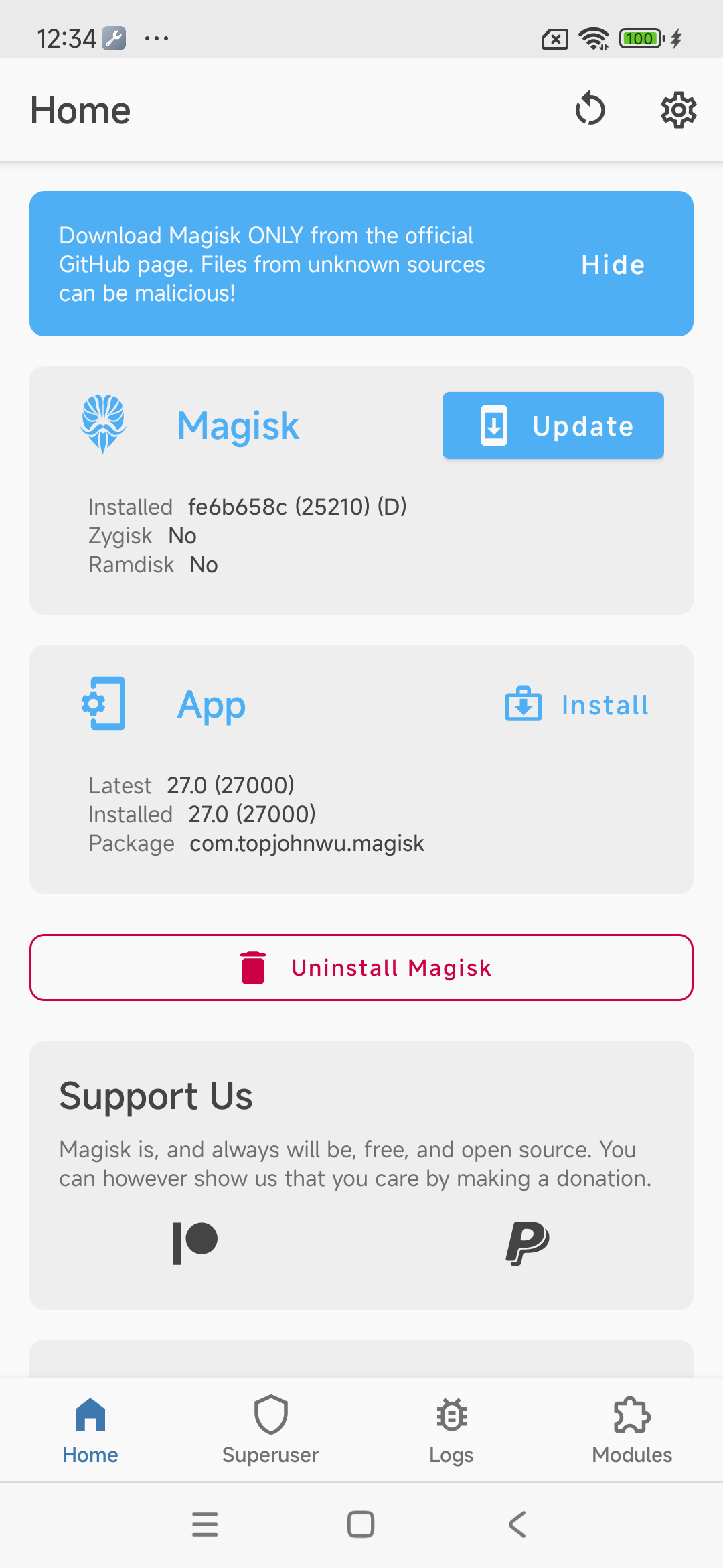 - Verificação do aplicativo de gerenciamento de raiz: Caso você tenha adotado uma abordagem orientada por aplicativos usando o SuperSU Magisk ou qualquer outro aplicativo semelhante, abra novamente o aplicativo e verifique o registro e as configurações para ver se há algum erro ou outra informação útil.