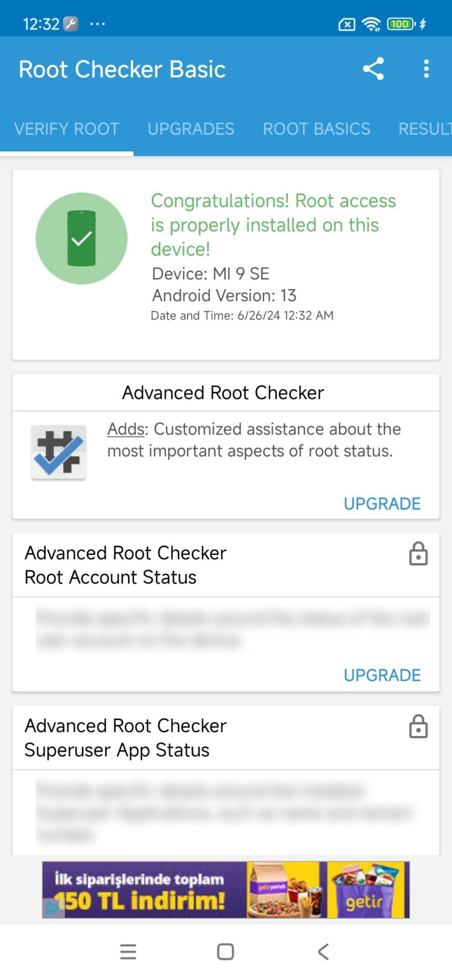 Se você tiver um dispositivo com root e estiver enfrentando problemas, poderá verificar o acesso root para ver se os problemas são causados por falha ou enraizamento parcial.
