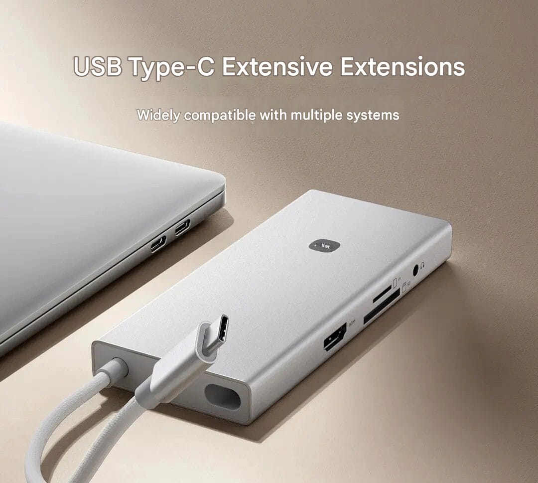 Die neue Dockingstation hat ein elegantes Gehäuse aus einer Aluminiumlegierung, das langlebig und modern ist. Ihr bestes Merkmal ist vielleicht der Schlitz zum Verstecken der Kabel, der für eine kabellose und aufgeräumte Schreibtischanordnung sorgt. Mit einem einzigen Typ-C-Anschluss können Nutzer ein umfangreiches Angebot von 10 Erweiterungsanschlüssen nutzen – so wird jeder Laptop mit begrenzten Anschlüssen zu einem Kraftwerk der Konnektivität.