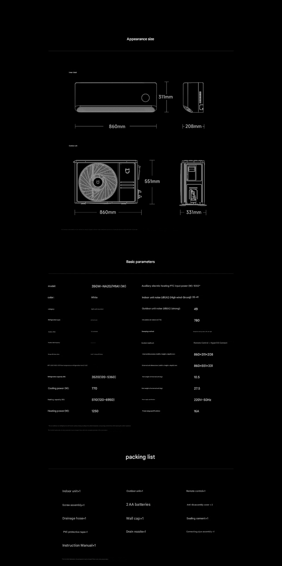 Die Klimaanlage ist mit der Xiaomi HyperConnect-Technologie kompatibel und lässt sich problemlos mit anderen intelligenten Haushaltsgeräten von Xiaomi verbinden. Der Nutzer kann die Klimaanlage auch über die Mi Home App aus der Ferne steuern, den Betrieb planen und den Stromverbrauch überprüfen.