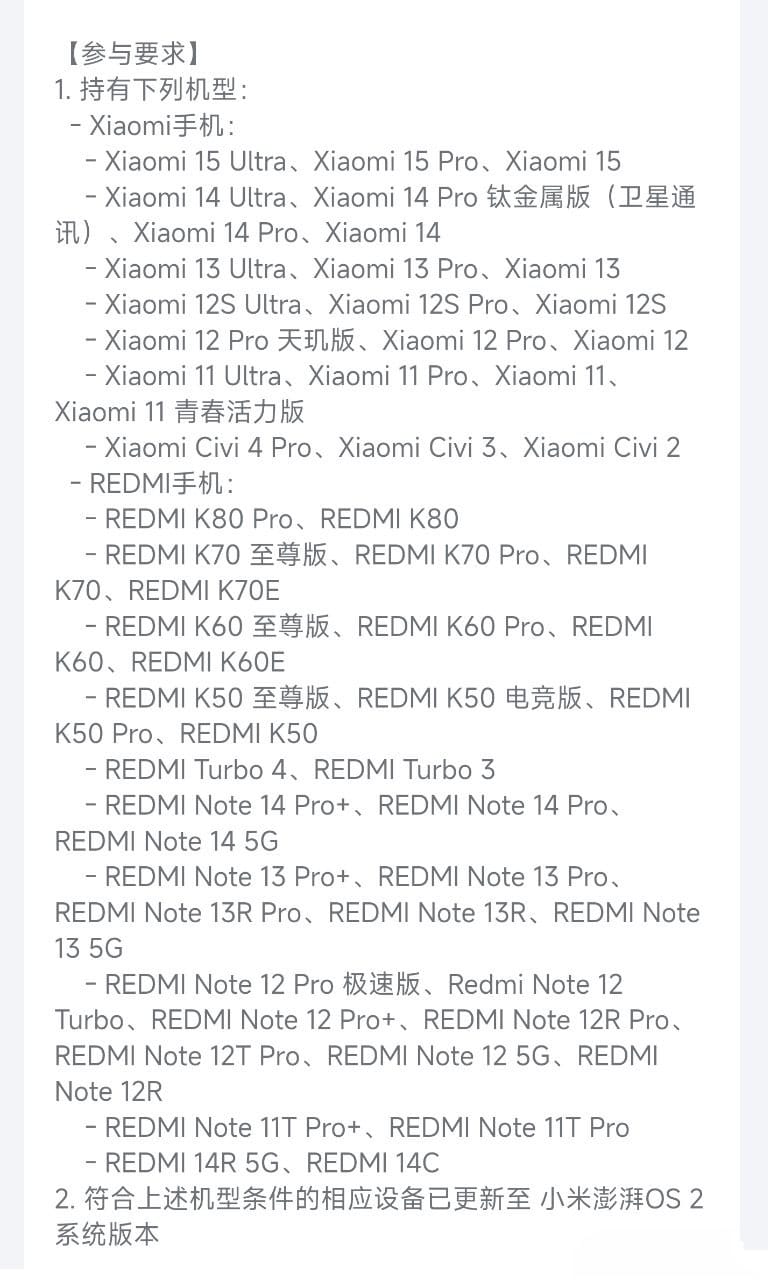 • Redmi K80, K80 Redmi K70 Ultra, K70 Pro, K70, K70E Redmi K60 Ultra, K60 Pro, K60, K60E