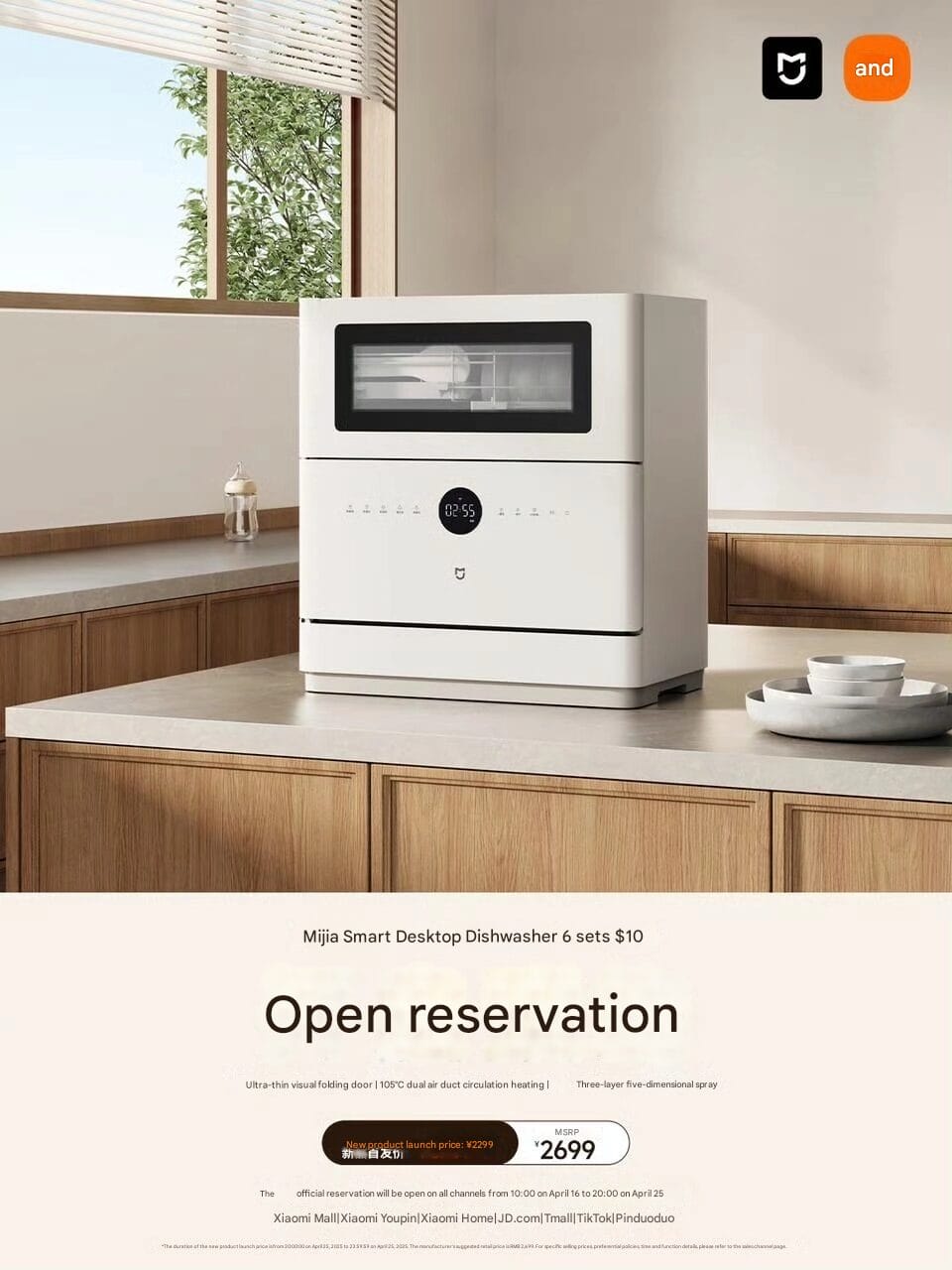 Xiaomis Smart-Home-System wird durch den neuen intelligenten Geschirrspüler Mijia S10 erweitert, der bereits über alle wichtigen Kanäle vorbestellt werden kann. Der Preis liegt bei CNY 2.699 (~USD 373) mit einem Endpreis von CNY 2.299 (~USD 318). Der offizielle Verkauf beginnt am 25. April um 20:00 Uhr. Der Mijia S10 wurde für moderne Küchen entwickelt und unterstützt sechs Geschirrsets. Er verfügt über Premium-Funktionen wie 105℃-Doppelkanaltrocknung, ein transparentes Sichtfenster und KI-Smart Control. Das Gerät kann über die Mijia App gesteuert werden und ist mit dem Xiaomi Smart Home Ökosystem verbunden.