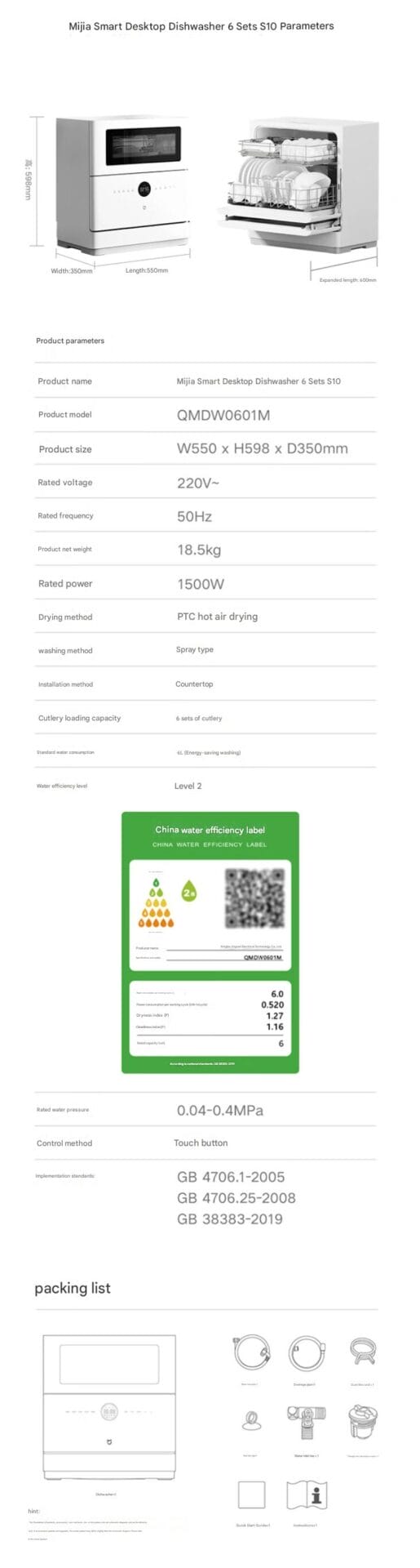 Der Mijia S10 ist so konzipiert, dass er in kleine Küchen passt, mit einer Gehäusedicke von 35 cm und einer Türöffnungstiefe von 60 cm. Sie verfügt über ein transparentes 17-Zoll-Fenster und eine integrierte Beleuchtung, die es den Nutzern ermöglicht, den gesamten Wasch-, Desinfektions- und Trocknungszyklus zu beobachten.