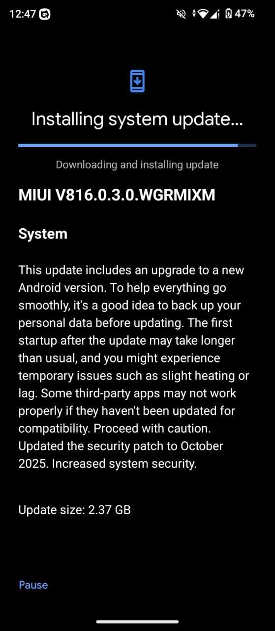 My 14T Pro received the update to Android 16 back in October. It was an update that was 6.5 GB in size.