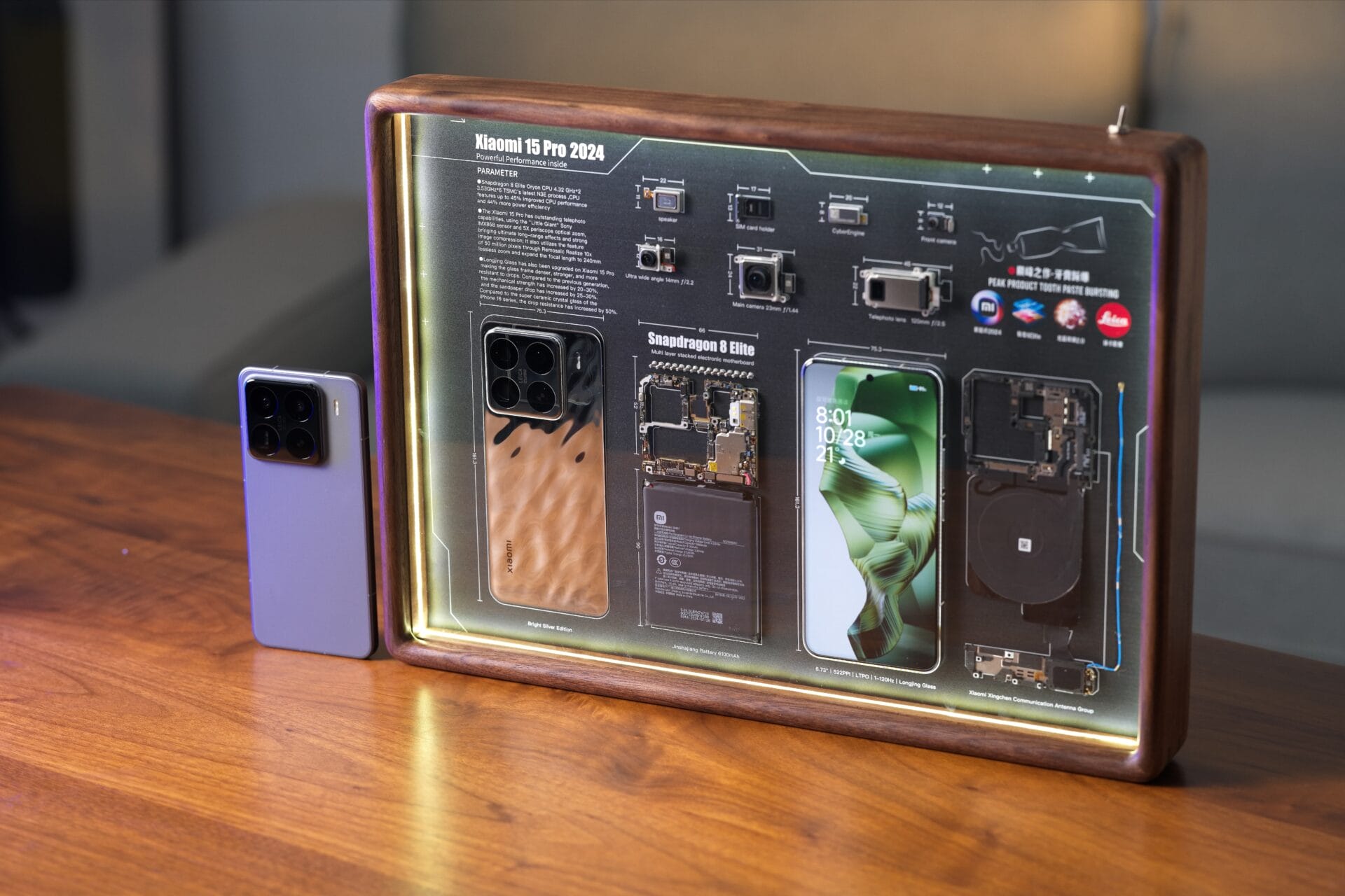 En la parte delantera, el Xiaomi 15 Pro cuenta con una pantalla OLED de 6,73 pulgadas y 3200×1440 píxeles de Huaxing Optoelectronics con materiales luminosos M9 y una estructura de microcavidades de doble capa. Al igual que la pantalla del próximo buque insignia, consigue una reducción del 24% en el consumo de energía en comparación con su predecesor e incluso supera la eficiencia energética de las configuraciones de menor resolución.
