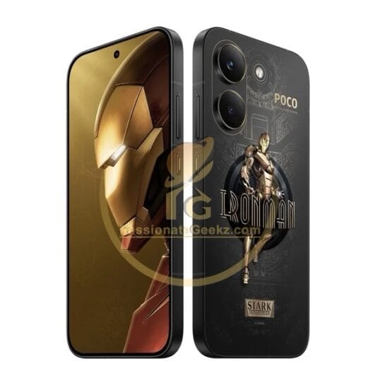 Según los últimos renders obtenidos de PassionateGeekz, el dispositivo cuenta con un panel trasero personalizado muy detallado. Una figura dorada y negra de Iron Man está centrada sobre un sutil gráfico circular de inspiración tecnológica, que le da un aspecto mecánico de primera calidad. El icónico logotipo de «Industrias Stark» aparece cerca del borde inferior, consolidando su estatus de coleccionista. La pantalla frontal muestra un fondo de pantalla personalizado del casco de Iron Man, lo que indica que el HyperOS basado en 16 estará profundamente personalizado con temas, iconos y animaciones exclusivos de Marvel.
