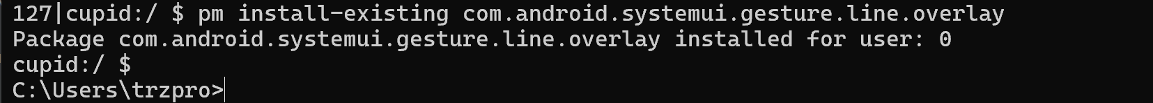 pm uninstall -k --user 0 com.android.systemui.gesture.line.overlay