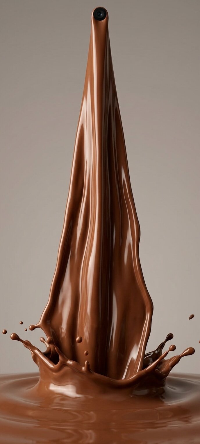 • Cascada de chocolate: «Una rica y fluida cascada de chocolate que sale directamente del recorte de la cámara en un delicioso paisaje».