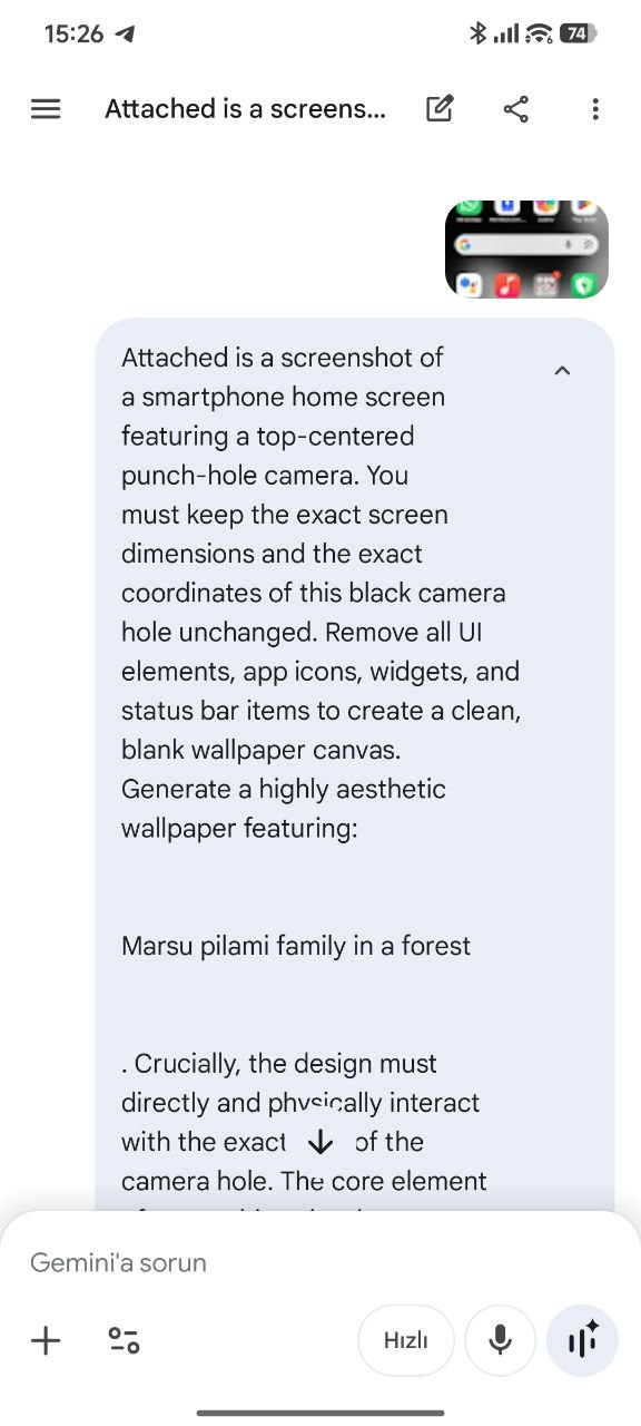 Haz una captura estándar de la pantalla de inicio de tu smartphone. Esta captura de pantalla sirve como plano, proporcionando a la IA las dimensiones exactas de tu pantalla y la ubicación precisa del agujero negro de la cámara.