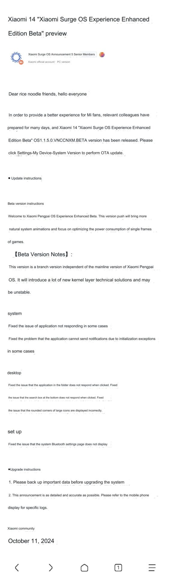 Esto forma parte de la Experiencia Mejorada de HyperOS de Xiaomi, una rama independiente de la línea principal de HyperOS. Dado que introduce importantes soluciones técnicas nuevas a nivel del núcleo, sigue siendo una versión beta y puede presentar algunas inestabilidades. Por lo tanto, recomendamos precaución a la hora de utilizarla como controlador diario, aunque los comentarios e informes de errores de los probadores de la beta serán cruciales para refinar la versión final.