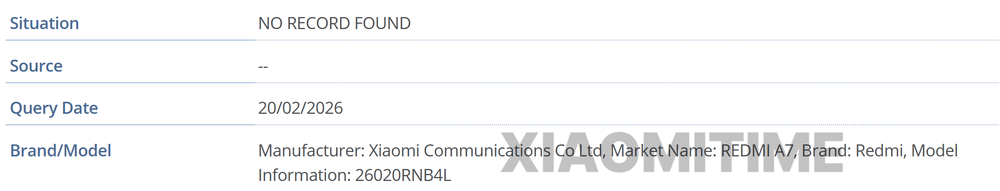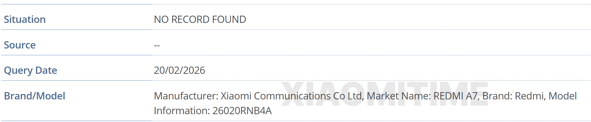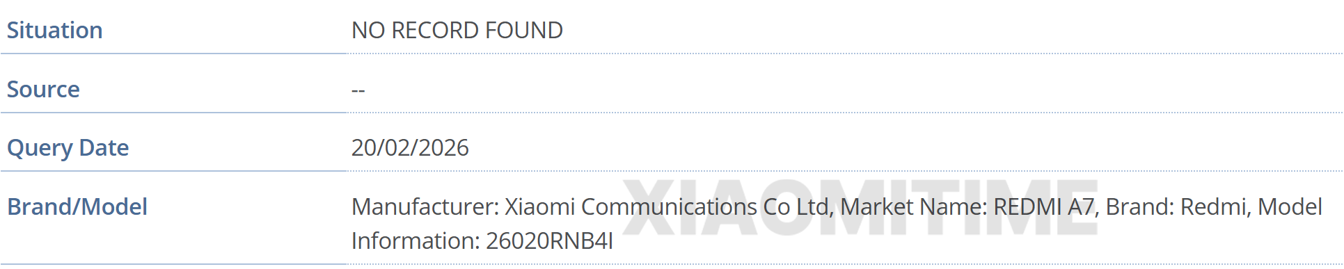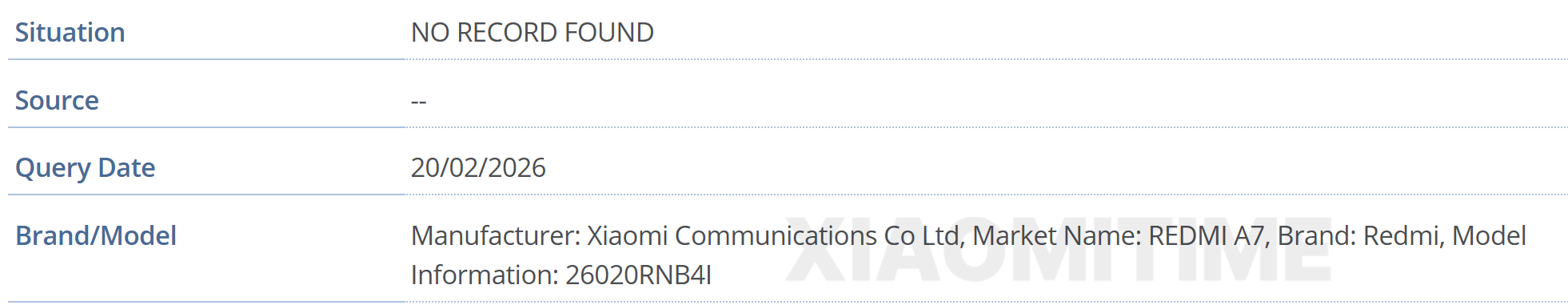 El REDMI A7 ha superado oficialmente la certificación NBTC de Tailandia con el número de modelo 26020RNB4A. Los datos oficiales confirman que se trata de un smartphone básico restringido a redes 4G. El dispositivo está construido en torno a una gran pantalla y una batería de gran capacidad de 6000 mAh. Se lanzará junto con el REDMI A7 Pro, que también se ha confirmado como dispositivo exclusivo 4G.