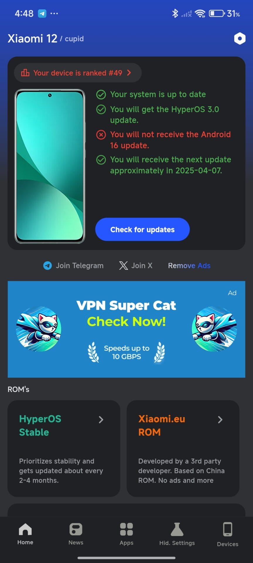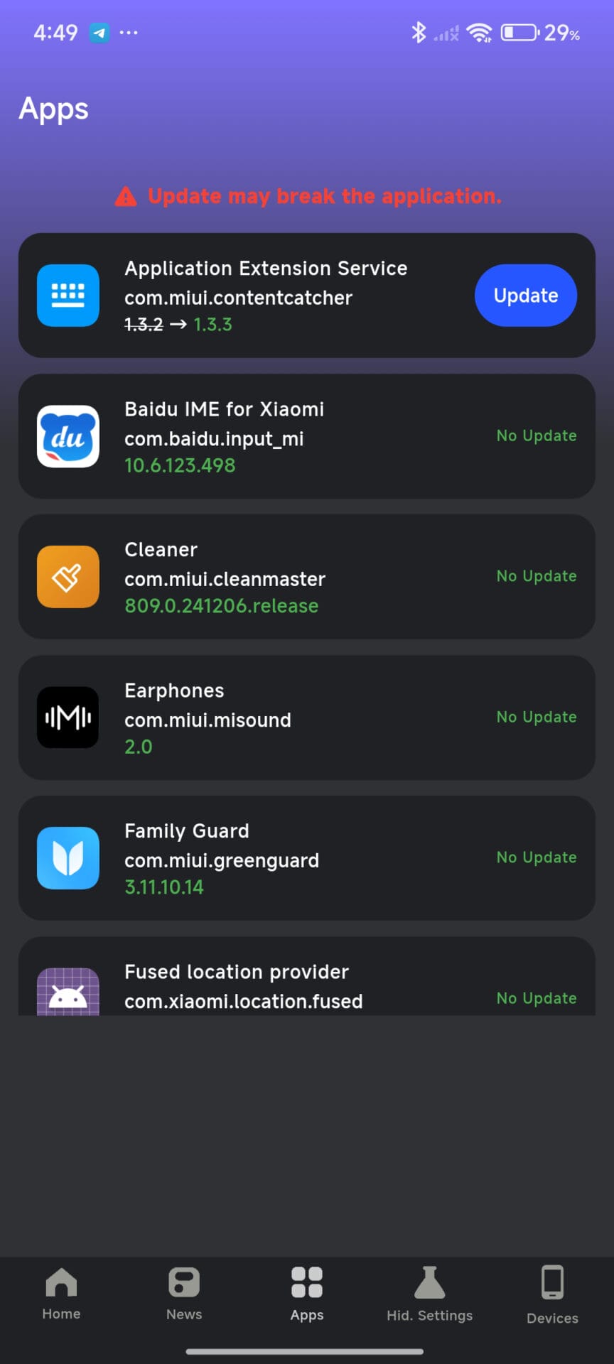 Para mayor rapidez, puedes descargar MemeOS Enhancer y detectar y actualizar automáticamente las aplicaciones obsoletas del sistema Xiaomi.
