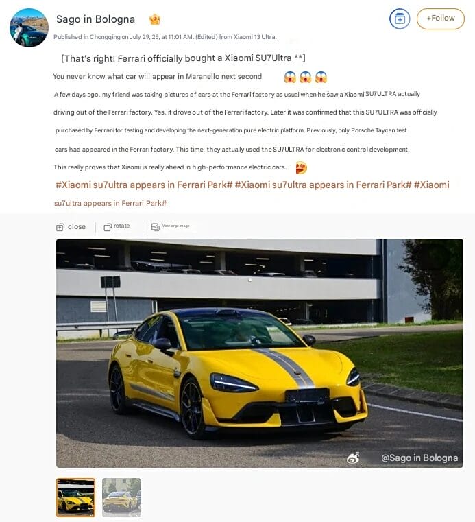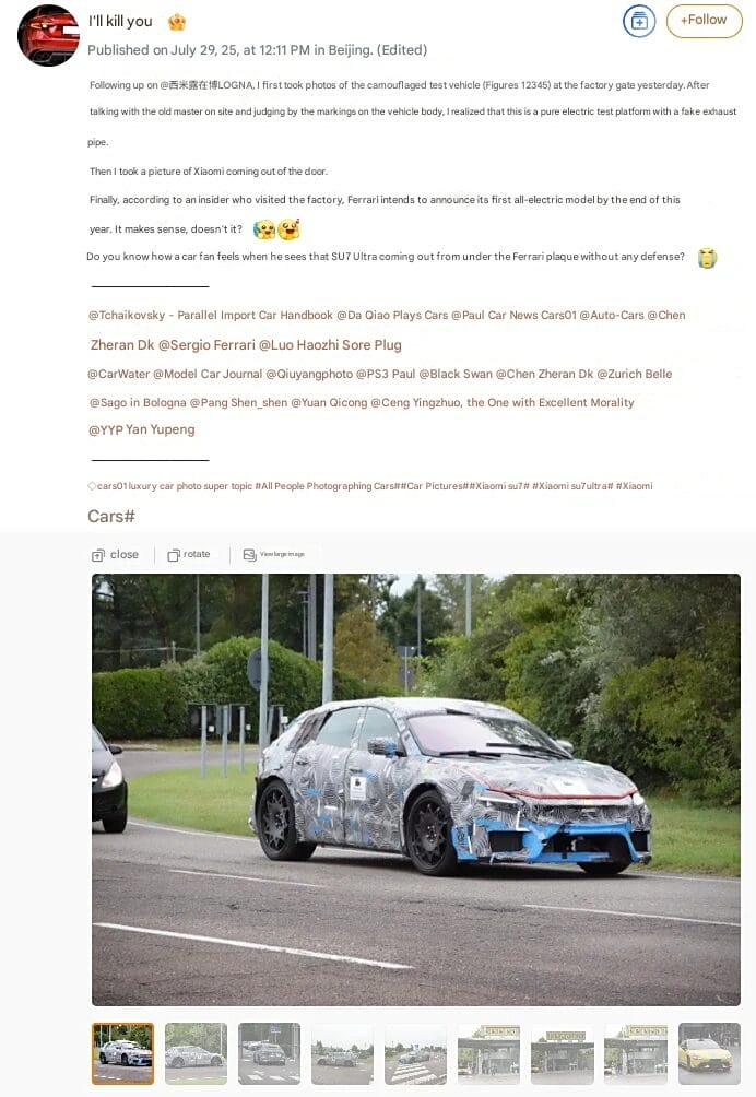 A aparição do SU7 Ultra na fábrica da Ferrari em Maranello é um evento digno de nota para o setor automotivo. Várias fontes, incluindo blogueiros conhecidos, documentaram a presença do veículo e receberam a confirmação dos técnicos da fábrica sobre seu status como uma plataforma de teste puramente elétrica, completa com tubos de escape simulados para fins de avaliação.