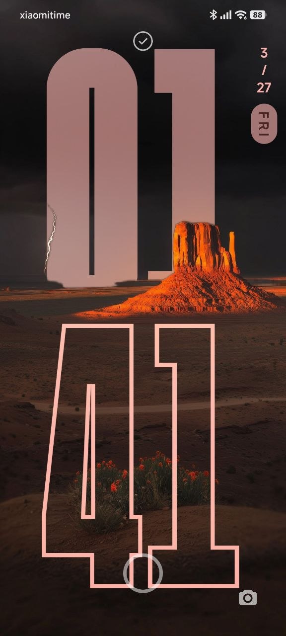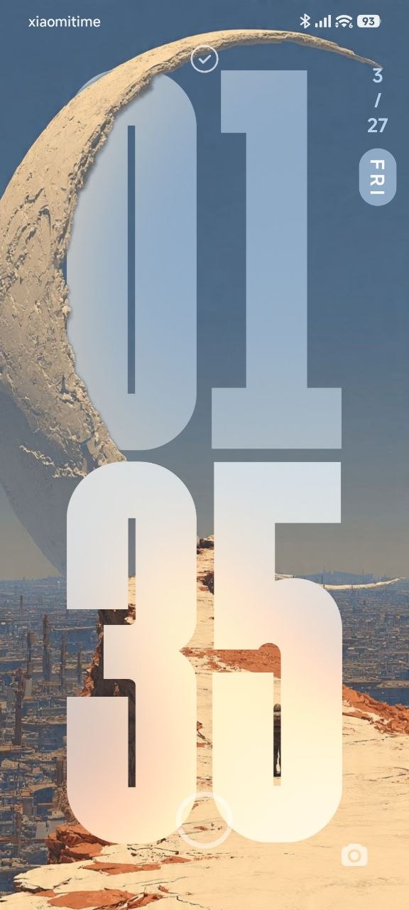 Sci-Fi and Surreal Universes: Clocks hiding behind colossal structures reaching into the sky or massive rock formations in the middle of a desert. This is the ultimate choice for a futuristic, cyberpunk-inspired lock screen.