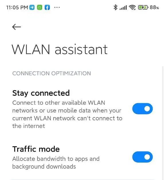 - Step 4 – Enter the Settings and go to “WLAN Assistant” on the WLAN tab. Afterwards, enable the “Stay connected” option and the “Traffic Mode” option.