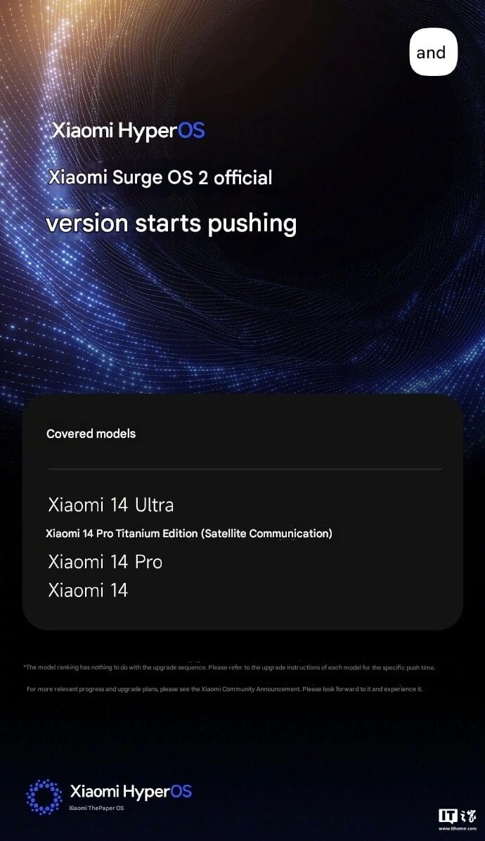 Weibo from Xiaomi HyperOS said that the official version of Xiaomi HyperOS 2 will be pushed to the Xiaomi 14 series, starting today. The company has mentioned that subsequent models will be covered in succession.