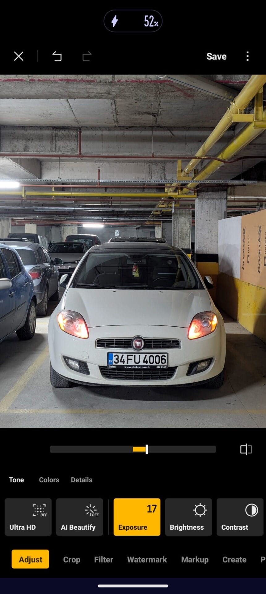Edição avançada de fotos: Como visto nas capturas de tela, os ajustes de nível profissional estão disponíveis em guias como “Tom”, “Cores” e “Detalhes”, incluindo controles deslizantes para Exposição, Destaques e Sombras.
