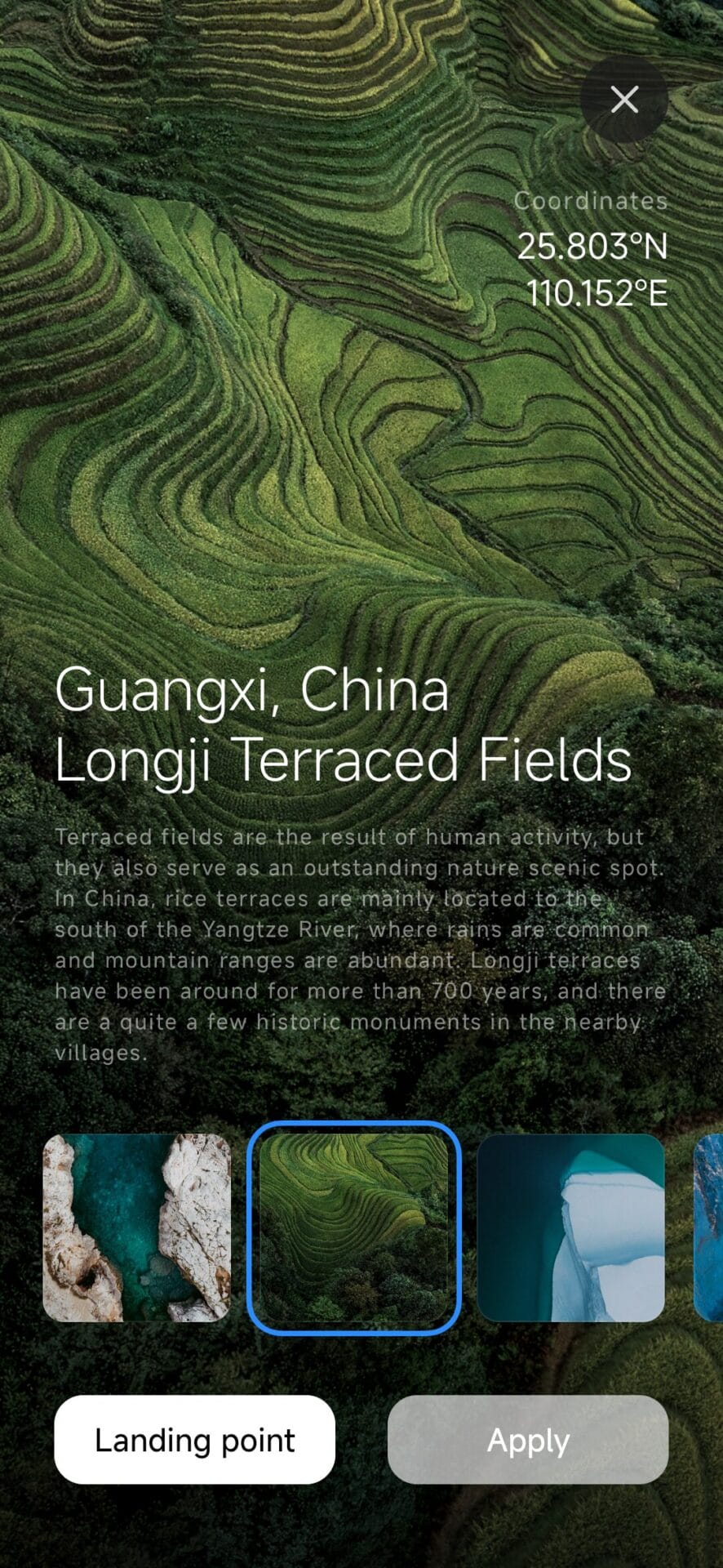 Esses superpapéis de parede do HyperOS, que contêm alguns dos lugares mais bonitos e empolgantes da Terra, não só dão ao seu dispositivo uma verdadeira transformação, mas também transportam você para esses lugares. Abra uma janela para o universo em seu dispositivo com estas etapas fáceis e acesse várias belezas dinâmicas em diferentes locais e corpos celestes de uma só vez.