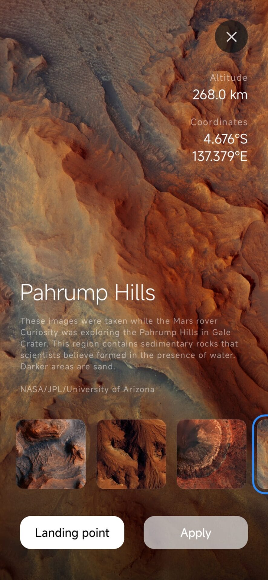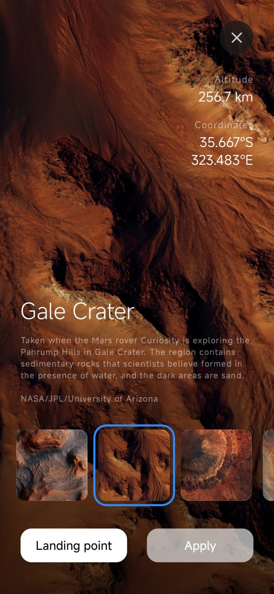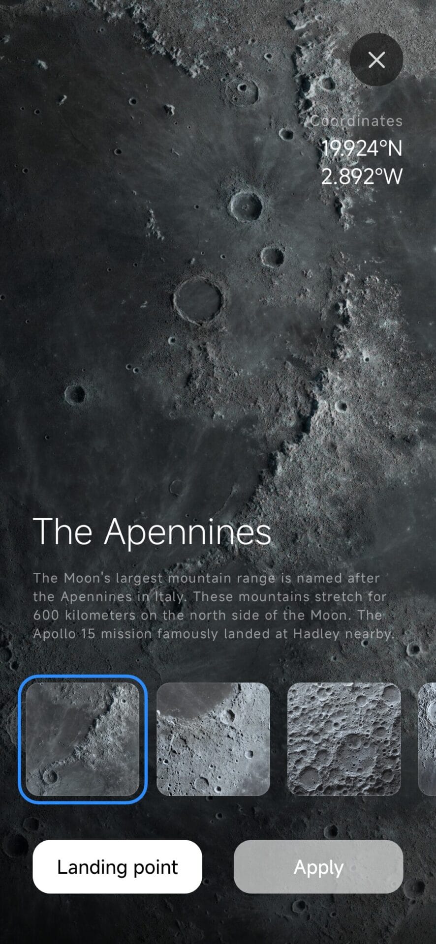 - Chang’e 5: Esse plano de fundo é baseado na missão lunar chinesa. Ele mostra a área explorada pela sonda Chang’e 5, com grandes detalhes da geologia lunar diversificada.