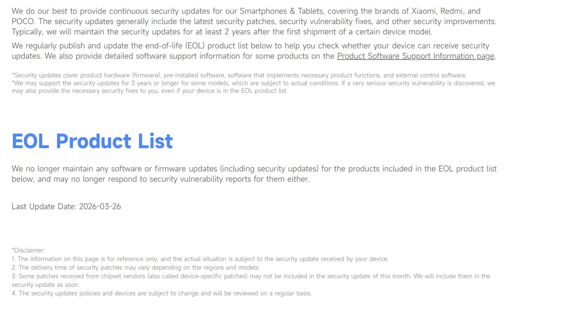 Xiaomi’s official “End of Life” (EOL) product list is a critical resource for millions of users worldwide, marking the definitive point when a device stops receiving security patches and software updates. However, as of March 26, 2026, the list has undergone a mysterious and unprecedented change: every single device has vanished.