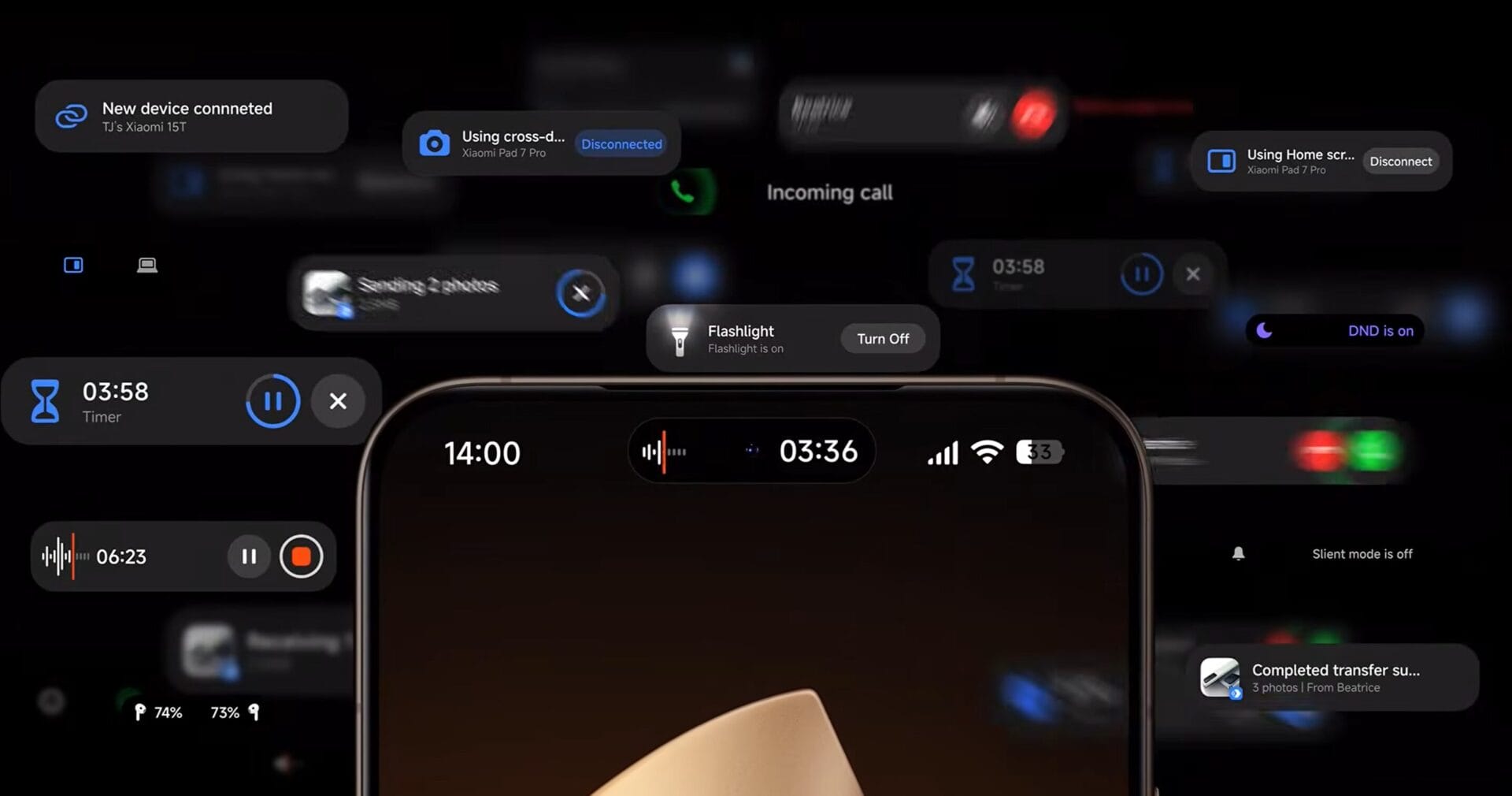 O Xiaomi HyperOS 3 leva a integração de dispositivos para o próximo nível. Inspirado na conectividade entre dispositivos, o novo sistema operacional apresenta recursos que permitem o compartilhamento de arquivos de telefone para telefone simplesmente aproximando os dispositivos. Isso é perfeito para compartilhar arquivos rapidamente com amigos e familiares. Além disso, ele traz o encaminhamento de chamadas e SMS e o compartilhamento de tela integrado com dispositivos como o MacBook da Apple, preenchendo a lacuna entre os ecossistemas para uma experiência verdadeiramente conectada.