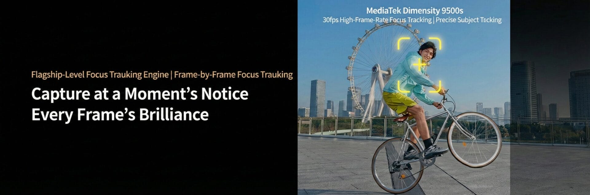 Para fotógrafos móveis, a Dimensity 9500s traz um mecanismo de segmentação semântica de primeira linha. Ela também suporta gravação em tempo real de 8K HDR Dolby Vision. O mecanismo de foco automático também foi renovado. A câmera agora apresenta captura rápida e rastreamento de objetos assistido por IA para que o objeto permaneça sempre em foco, mesmo em condições de iluminação caóticas.