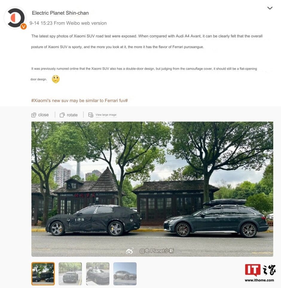 The blogger claims that the Xiaomi SUV, implicitly, is sporting and dynamic, for some reason showing aspects before seen only on the exclusive Ferrari Purosangue. The shape is much sleeker in profile compared with the Audi A4 Avant, with Xiaomi’s SUV appearing to receive a lower, fastback-style silhouette-that makes the design even sportier and aggressive. In typography, its similarities are sleek body lines along with prominent curves and low-slung posture.