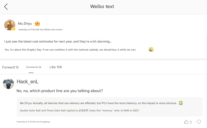 Ma Zhiyu afirmou que “todos os produtos com componentes de armazenamento serão afetados”, mas é “o mercado de PCs que será mais afetado, pois eles exigem maior capacidade de memória”. Isso está de acordo com a crescente preocupação dos fabricantes globais com relação à cadeia de suprimentos de semicondutores.