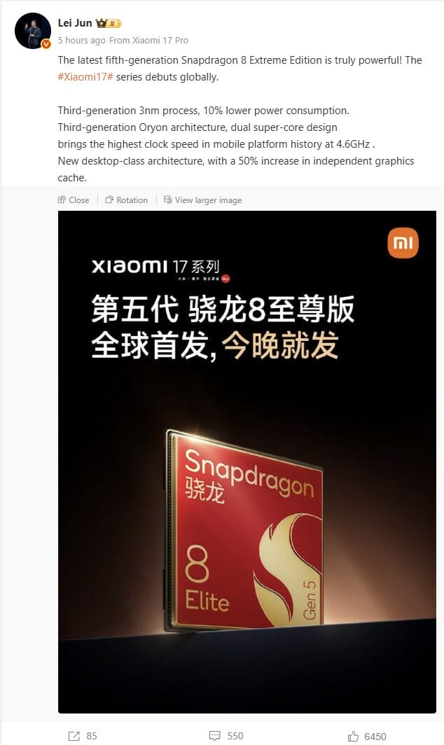 Hoje é um dia realmente incrível para nós, fãs da Xiaomi. A Qualcomm revelou oficialmente sua nova plataforma móvel principal, o Snapdragon 8 Elite Gen 5, e as especificações são de cair o queixo. Em uma fantástica demonstração de parceria, ninguém menos que Lei Jun confirmou que a nova série Xiaomi 17 será a primeira a ser lançada globalmente com esse chip poderoso. Não se trata apenas de um pequeno passo à frente; é um salto gigantesco para o desempenho móvel, com a Qualcomm divulgando-o como a “CPU móvel mais rápida do mundo”. Esse novo chip estará no centro dos dispositivos mais esperados do ano. Para saber mais sobre o que torna o software da Xiaomi tão especial, não se esqueça de visitar HyperOSUpdates.com e conhecer os incríveis recursos do nosso aplicativo MemeOS Enhancer.